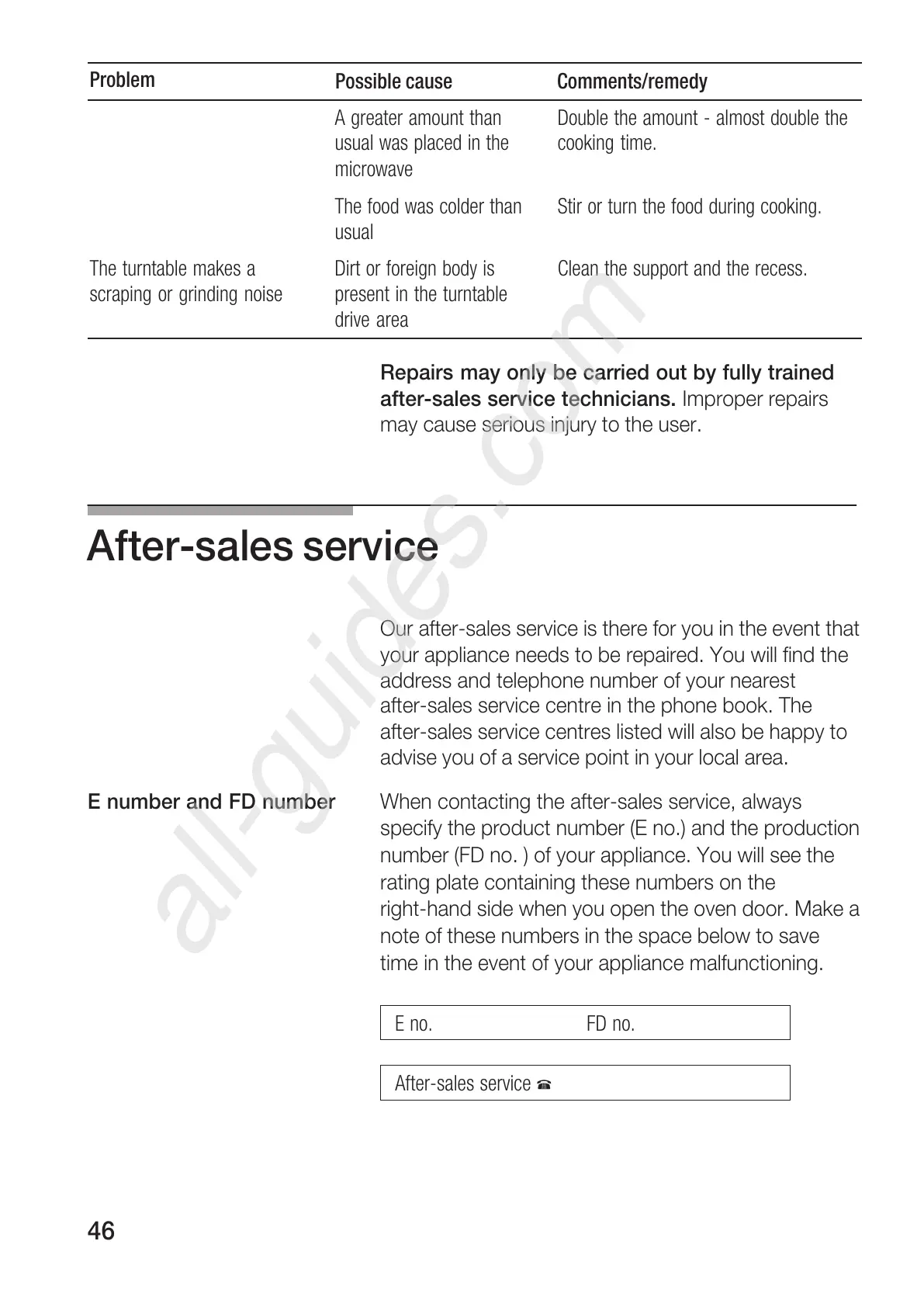 PROFILO MD1000 - After-sales Service; Contacting Service and Product Information