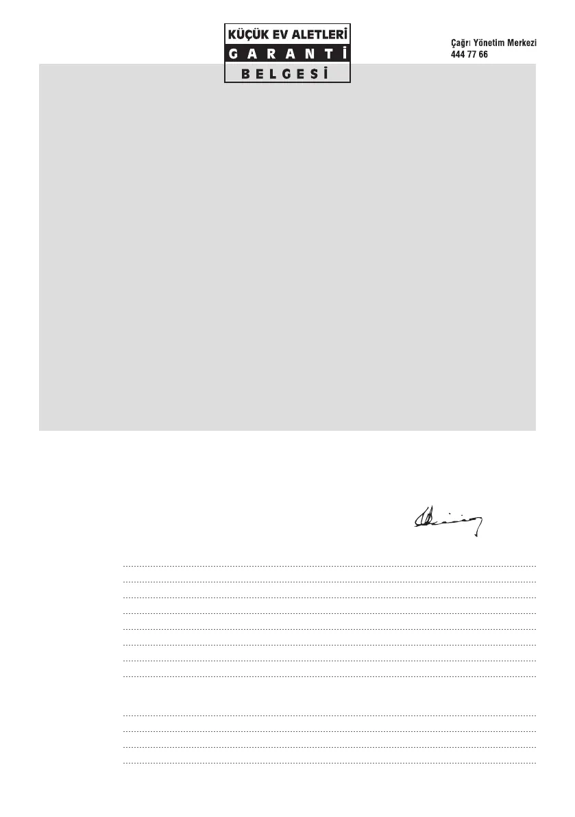 Garanti süresinin anlaflmazl›k durumunda fatura tarihi esas al›naca€›ndan bu belge ile birlikte faturan›n veya okunakl› fotokopisinin saklanmas› gereklidir.