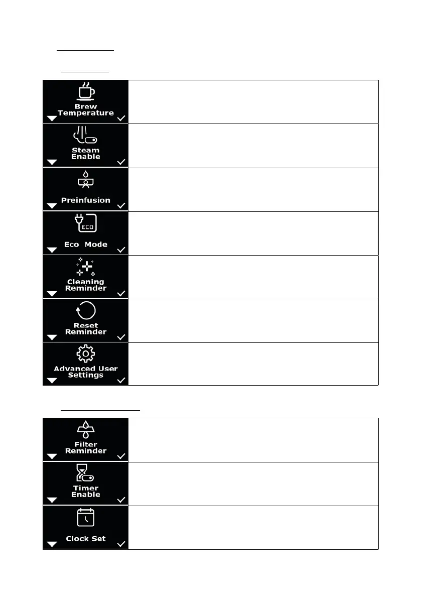 Menu: “Cleaning Reminder” to remind for cleaning the brew group (chapter