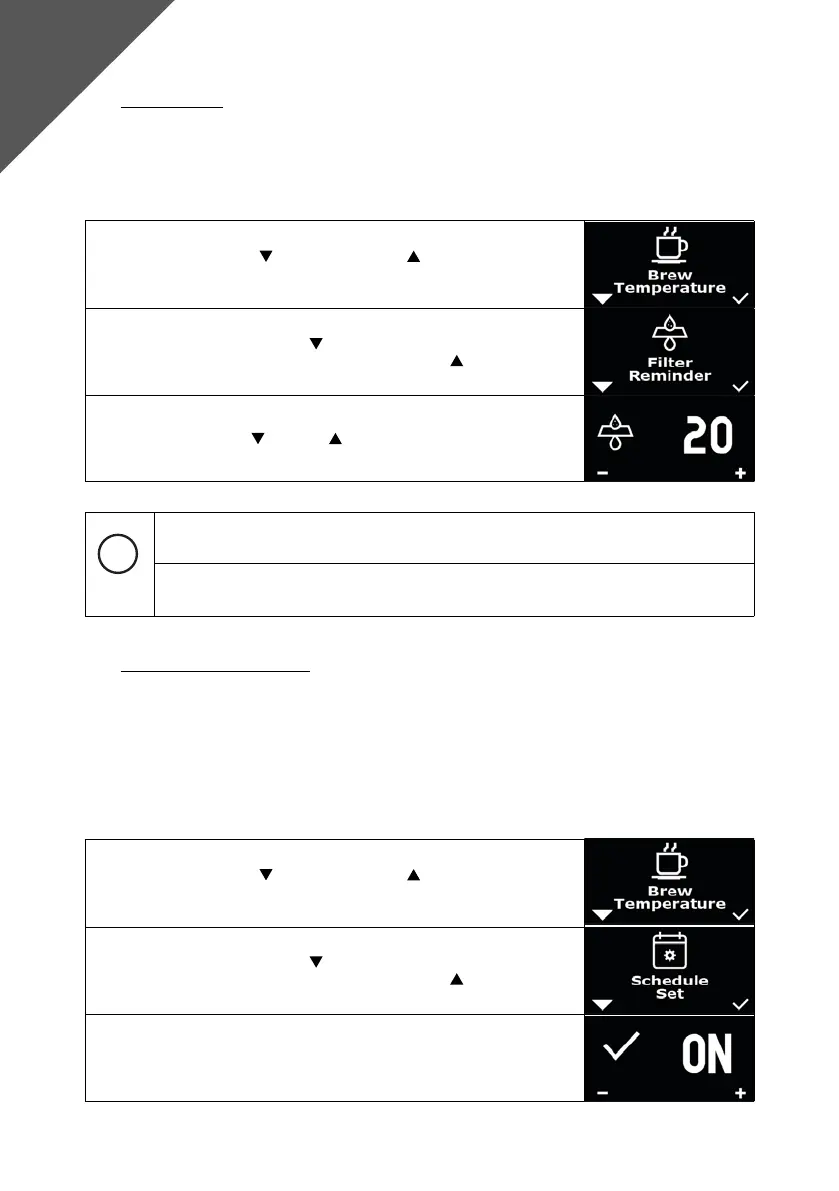 The lter change reminder can be set in 5 litre increments from OFF to 200 litres. After the lter has