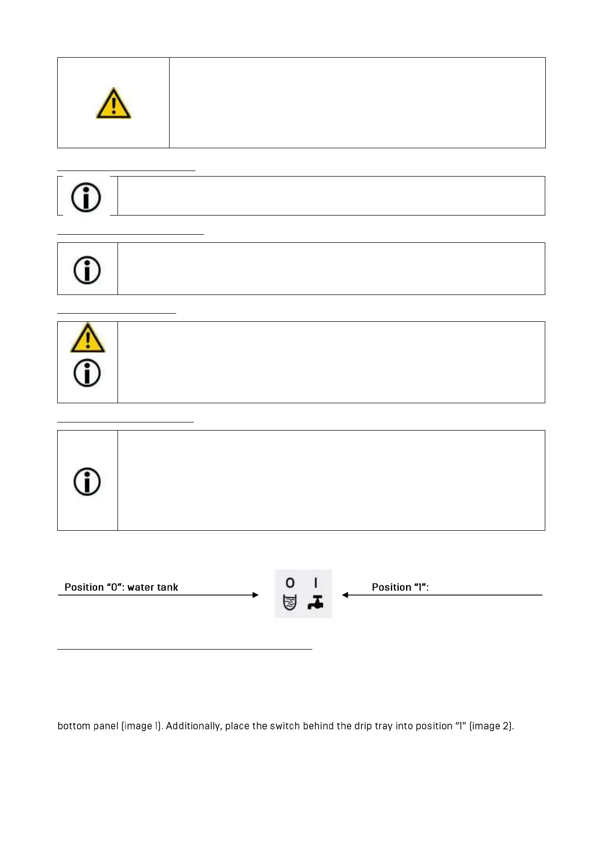 When using the machine with direct water supply, the valve has to be turned towards the opposite side of