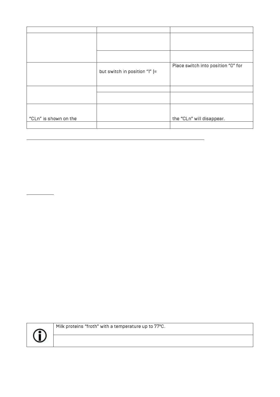 • Attention: When the desired amount of milk froth is reached, immerse the entire steam nozzle in the