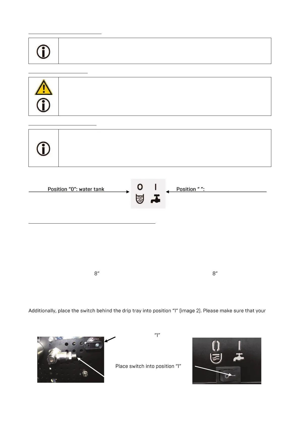 When using the machine with direct water supply, the valve has to be turned towards the water supply