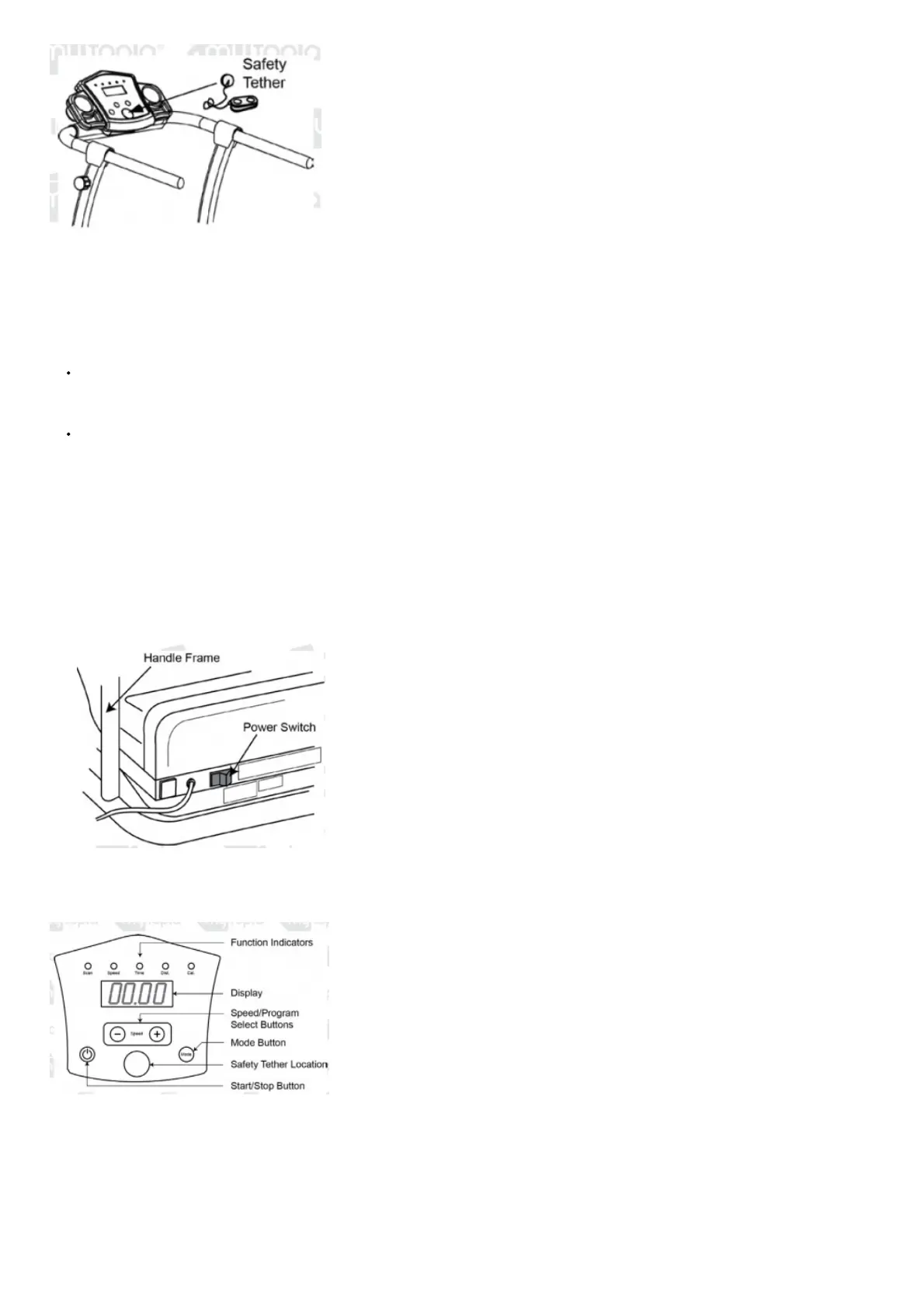Note: If the treadmill is on, but the safety tether is not attached, “ _._._._.” is shown on the console display and the treadmill cannot be started.