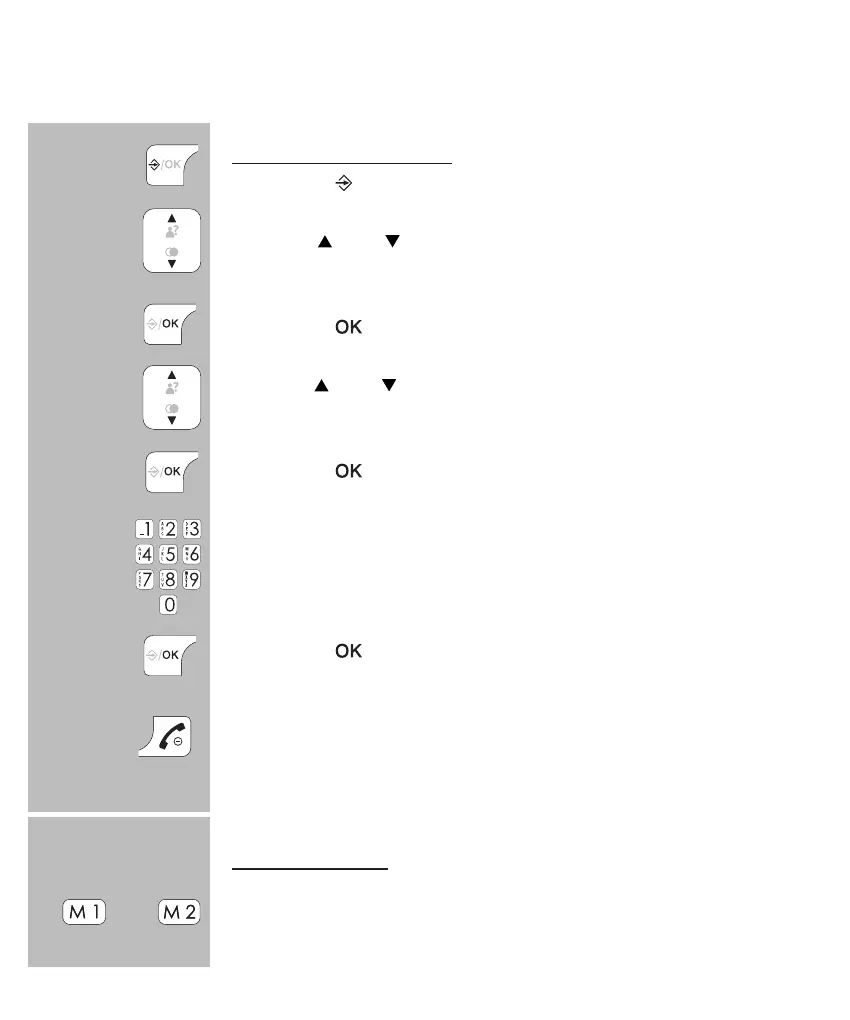 when the handset is idle, press and hold the M1 or M2