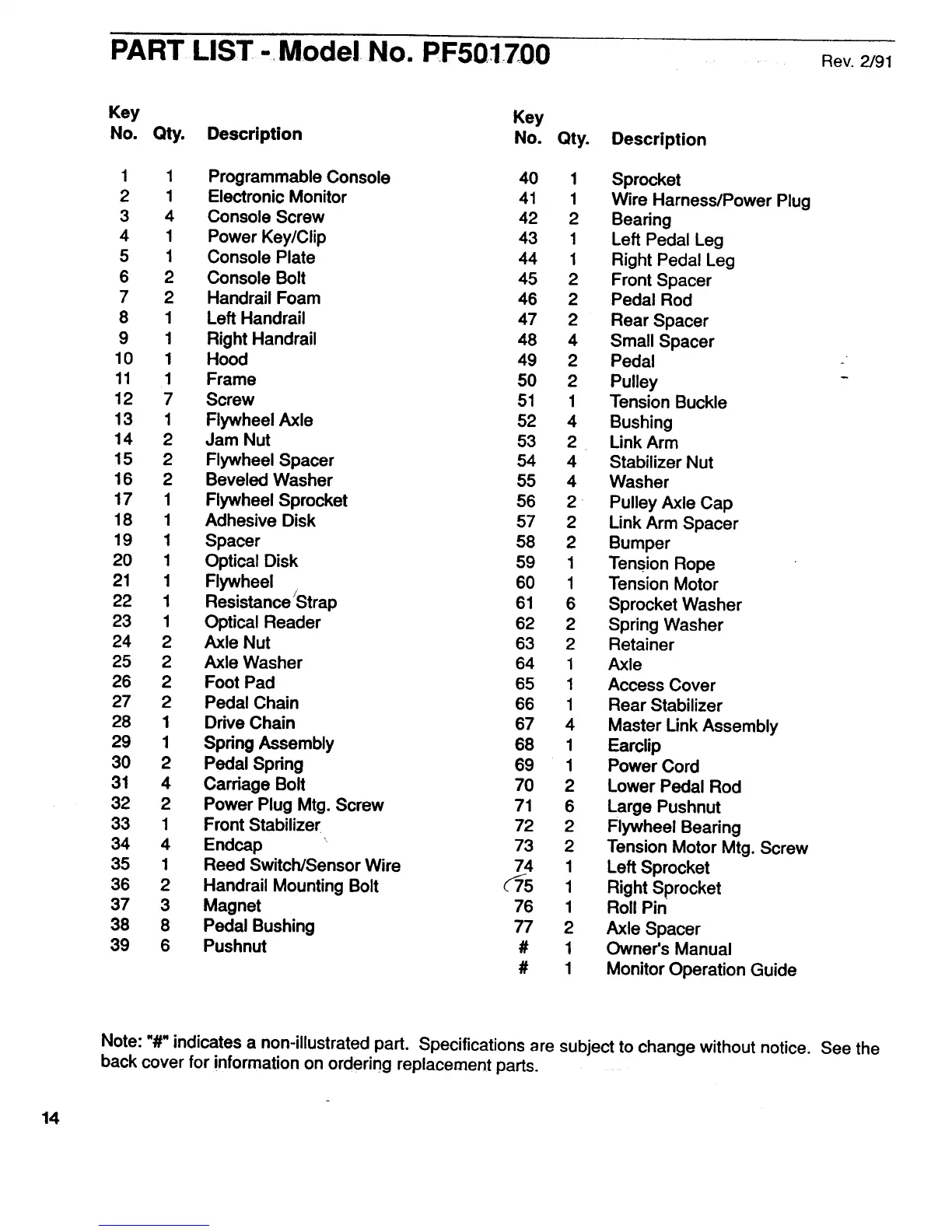 ProForm 3001 Stx Stepper - Part List
