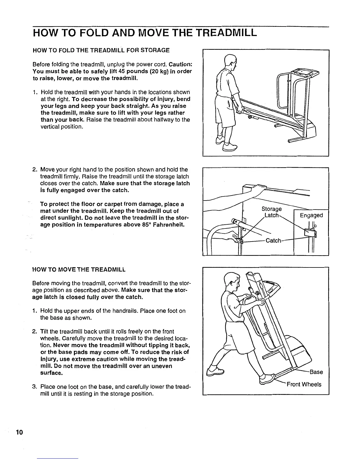ProForm 385 - Folding and Moving the Treadmill; Folding Treadmill for Storage; Moving the Treadmill