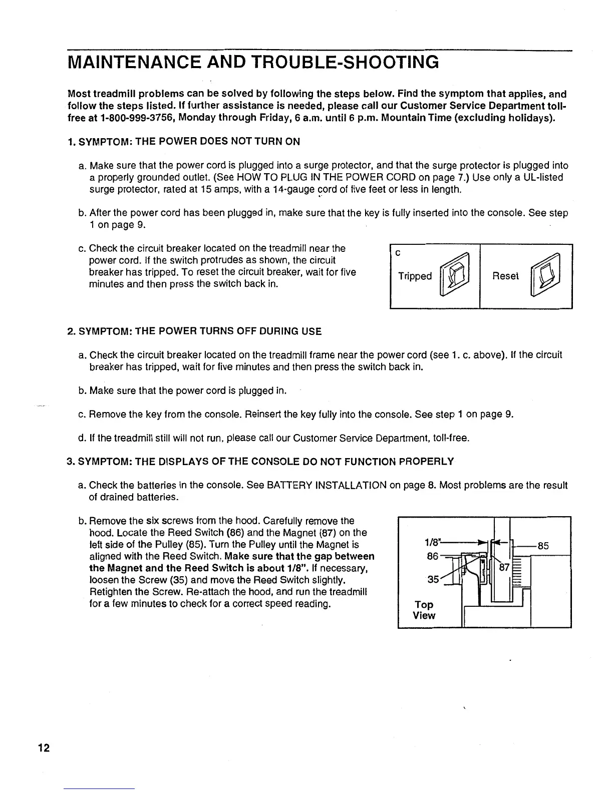 ProForm 385 - Maintenance and Troubleshooting; Troubleshooting Power and Display Issues