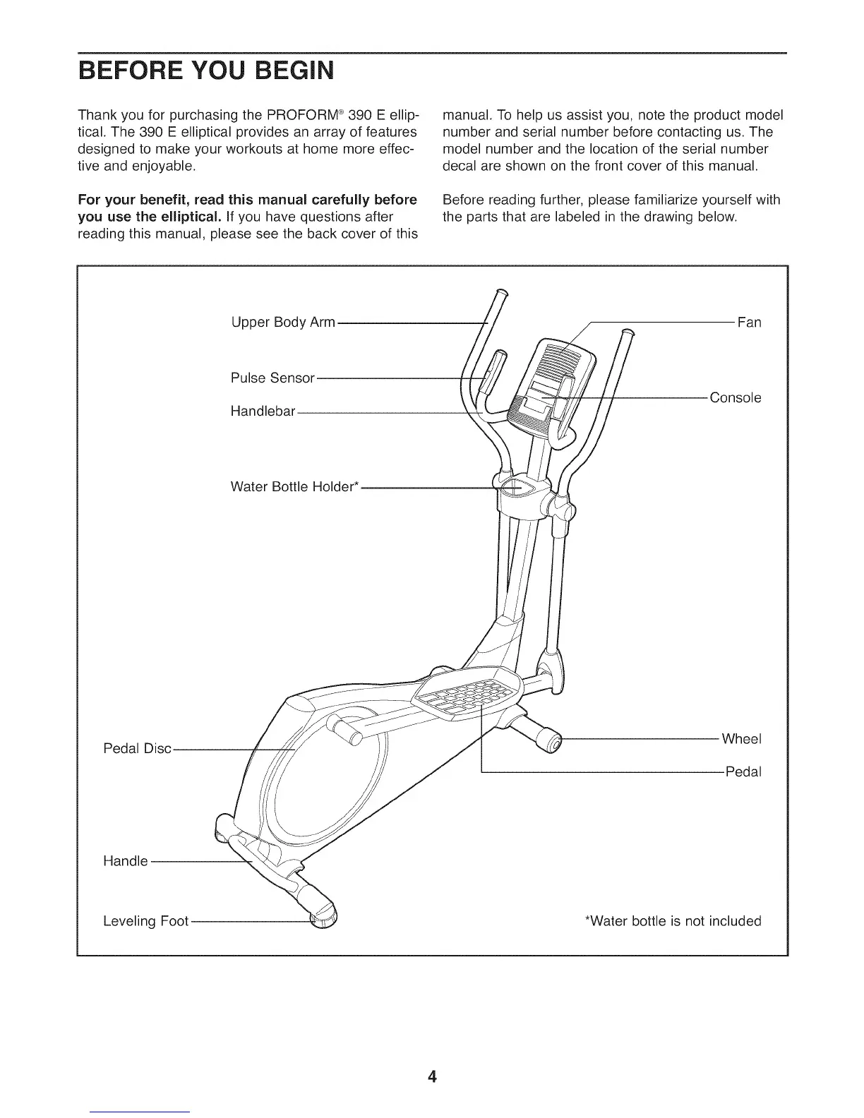 Thank you for purchasing the PROFORM ®390 E ellip-