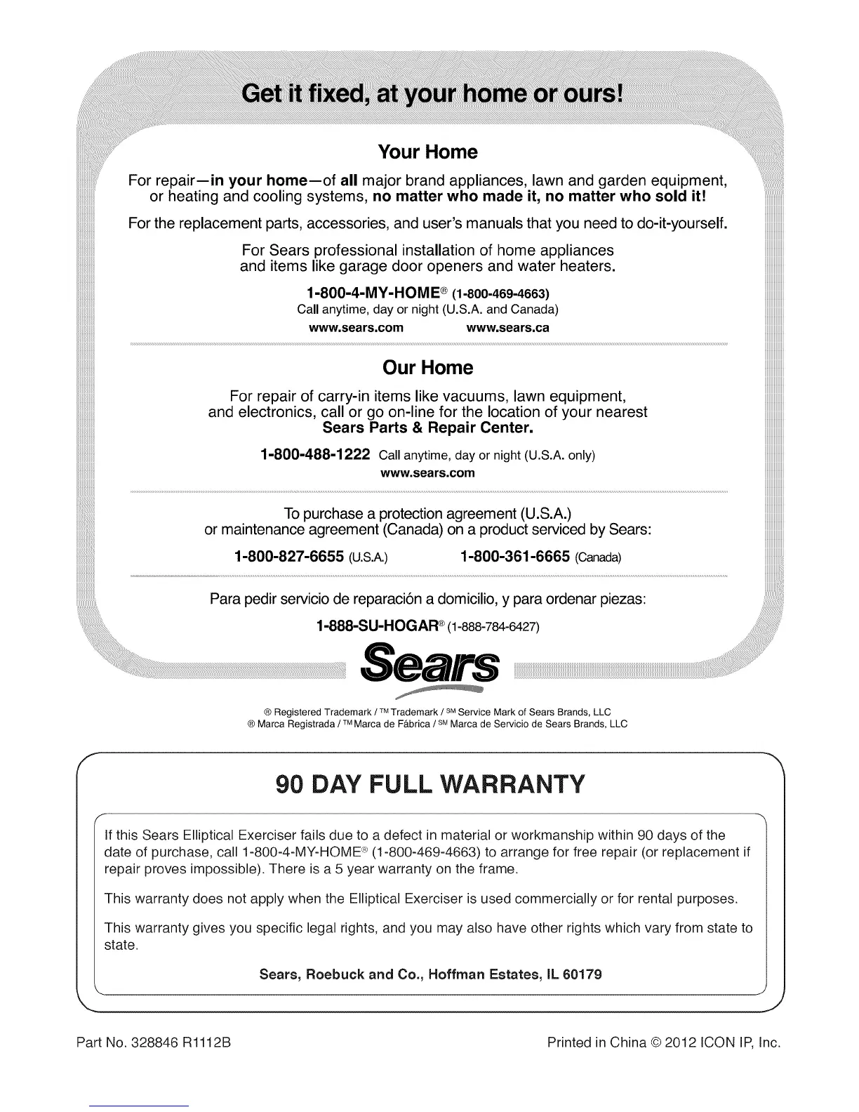 Part No. 328846 R1112B Printed in China © 2012 ICON IP, Inc.
