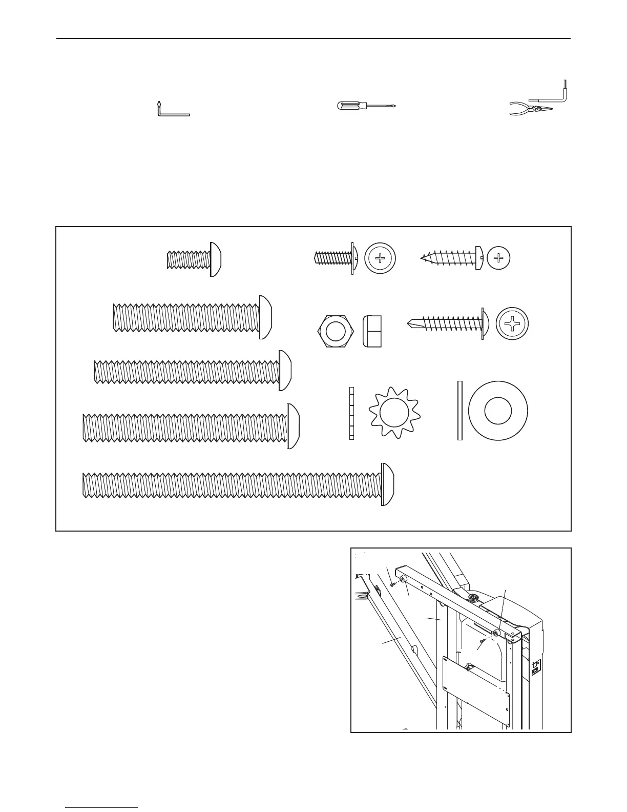 For help identifying the assembly hardware, see the drawings below. Note: The assembly hardware and other