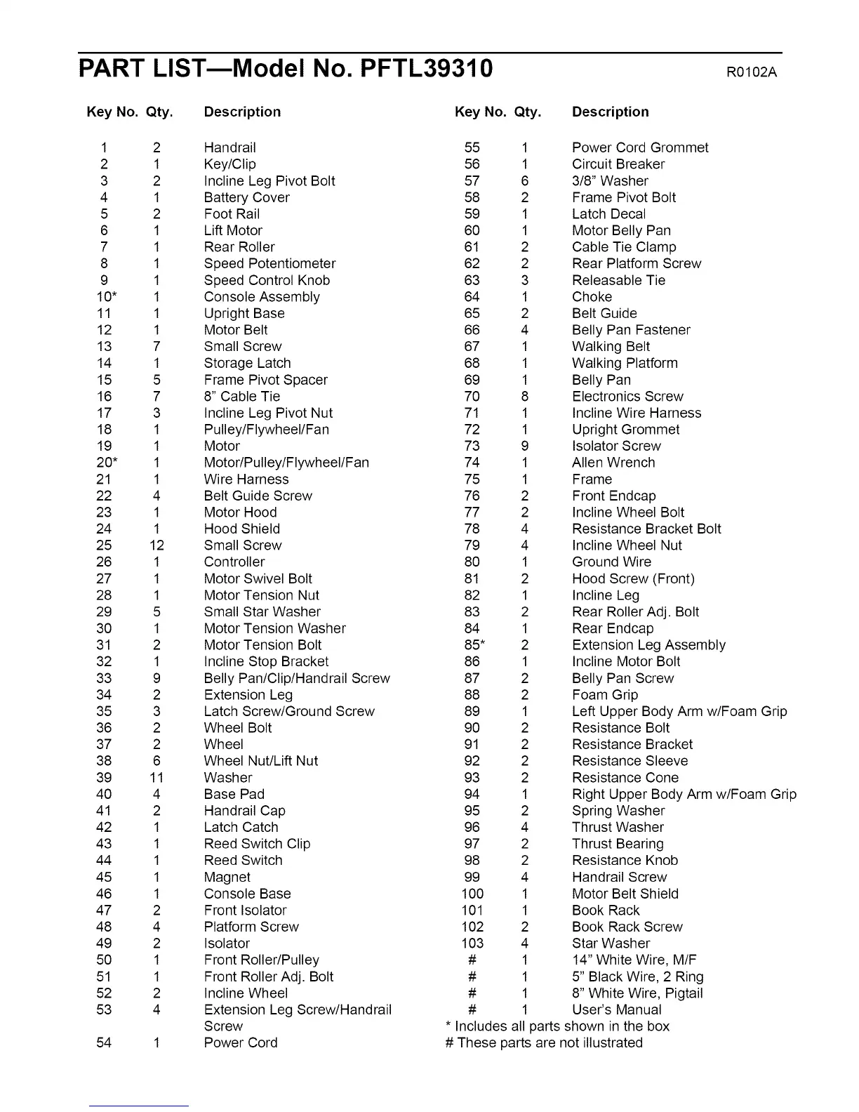 PART LISTmModel No. PFTL39310 Ro o2A