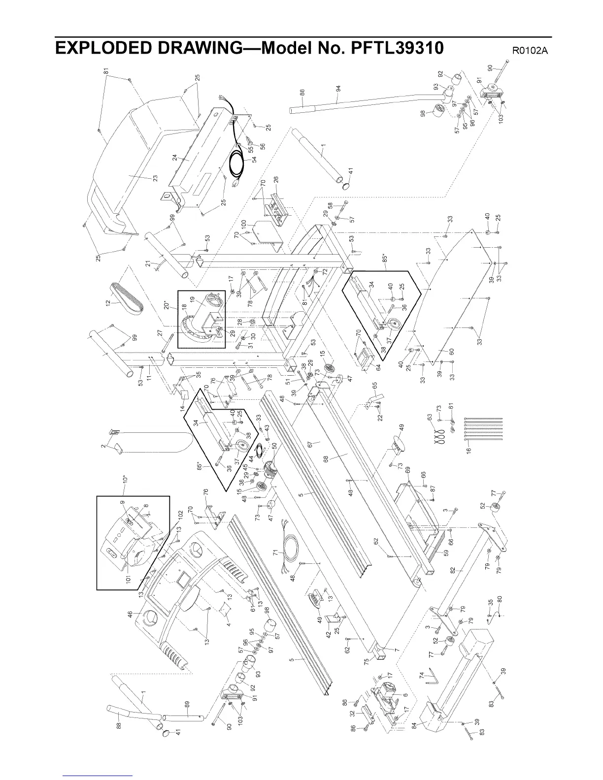 ProForm 460 Crosswalk - Exploded View of Treadmill Components