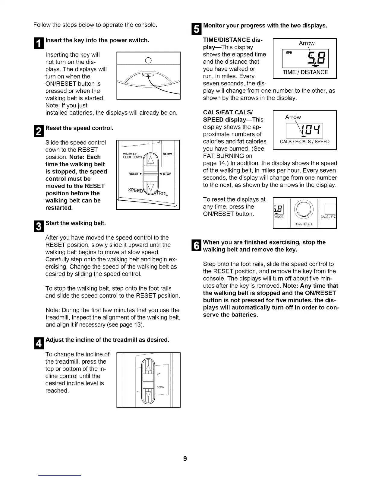 the walking belt is stopped and the ON/RESET