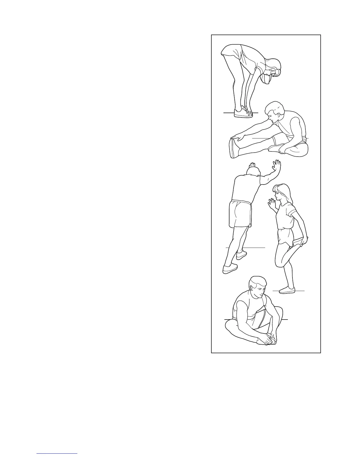 then relax. Repeat 3 times. Stretches: Hamstrings, back of