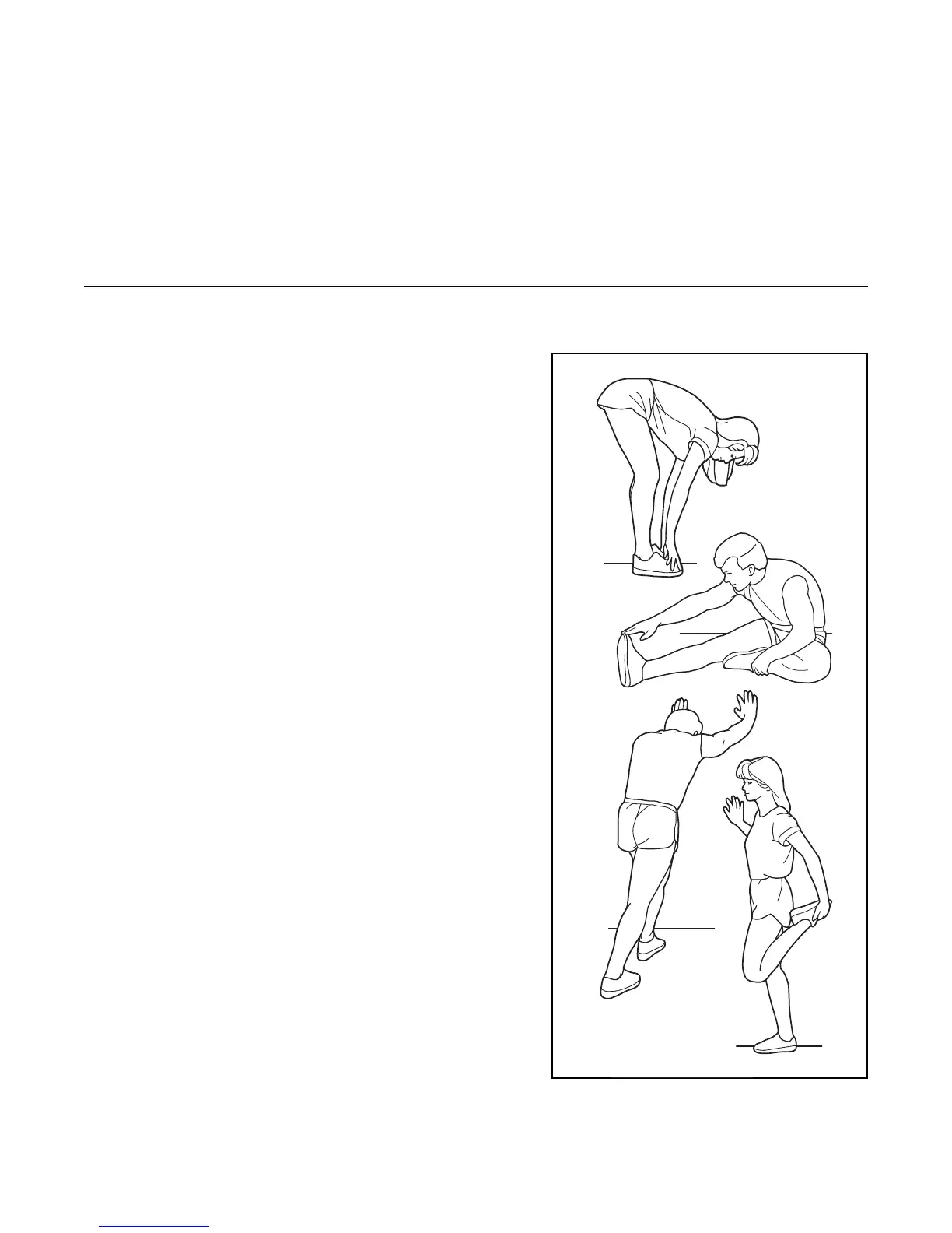 The correct form for several basic stretches is shown at the