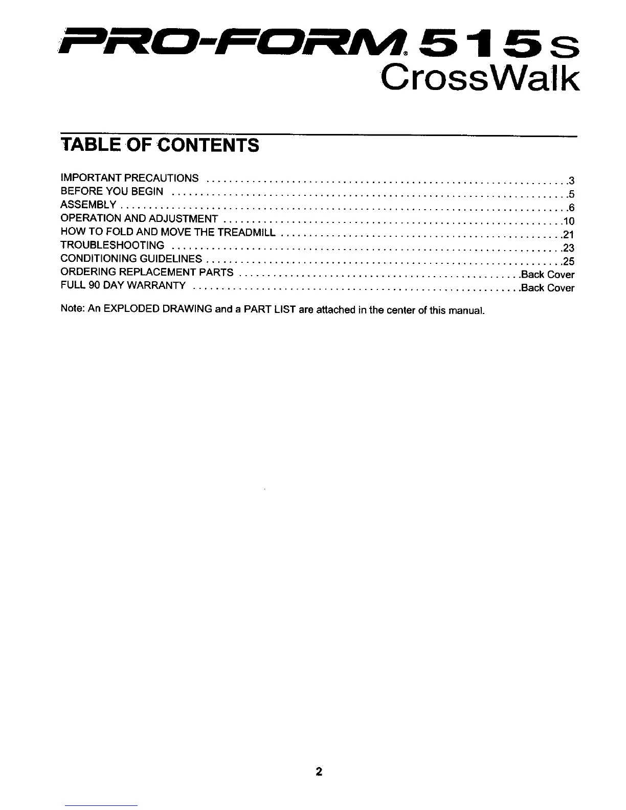Note: An EXPLODED DRAWING and a PART LIST are attached in the center of this manual.