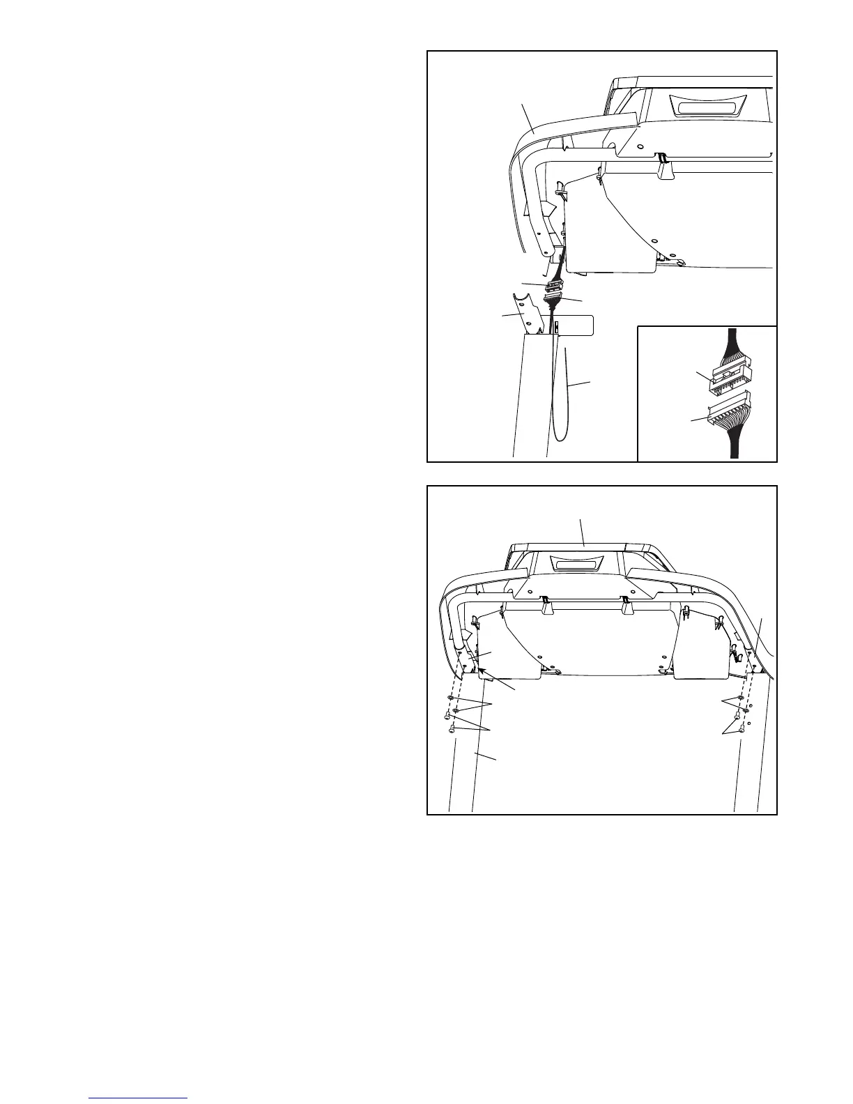 9. Set the console assembly on the Handrails (84).