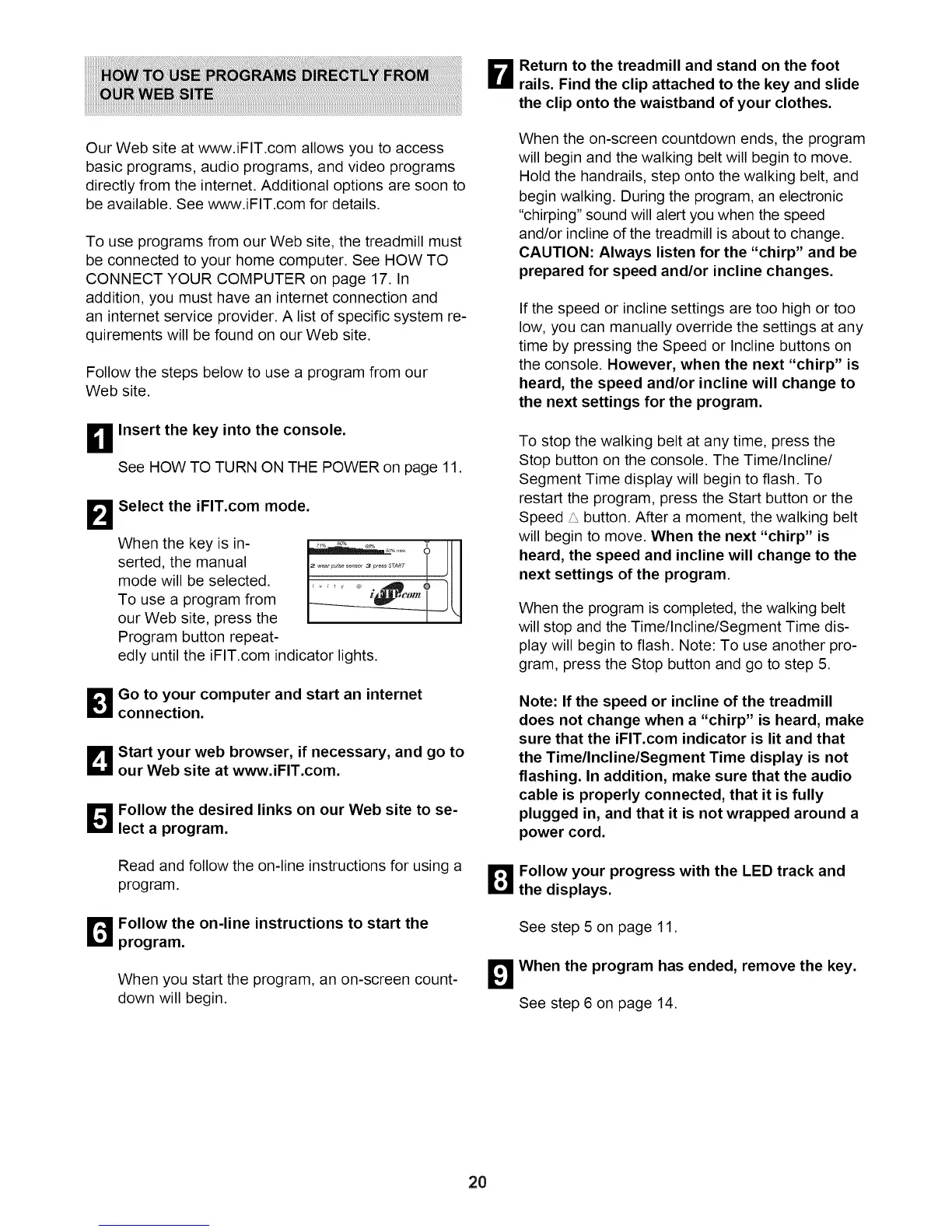To use programs from our Web site, the treadmill must