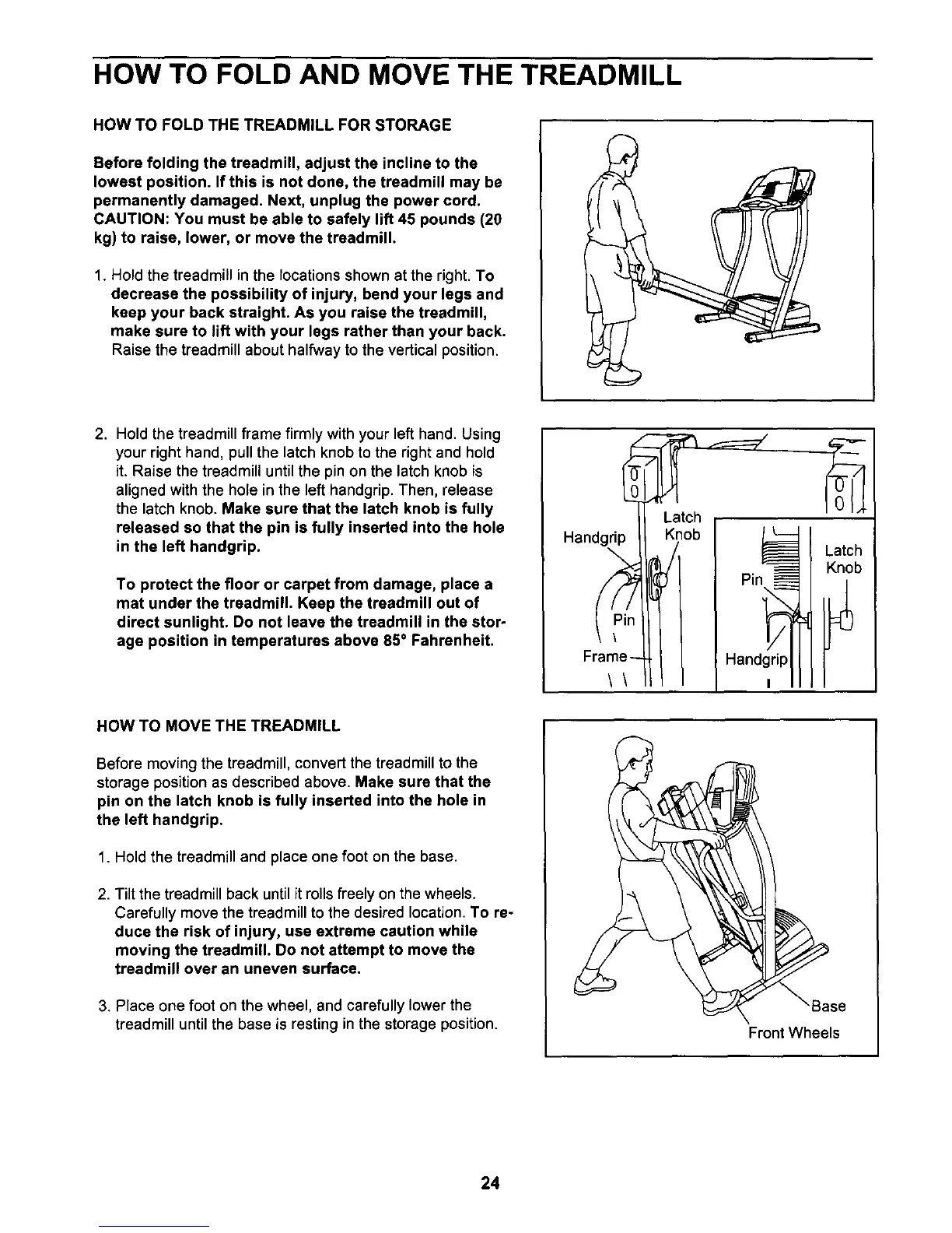 moving the treadmill. Do not attempt to move the