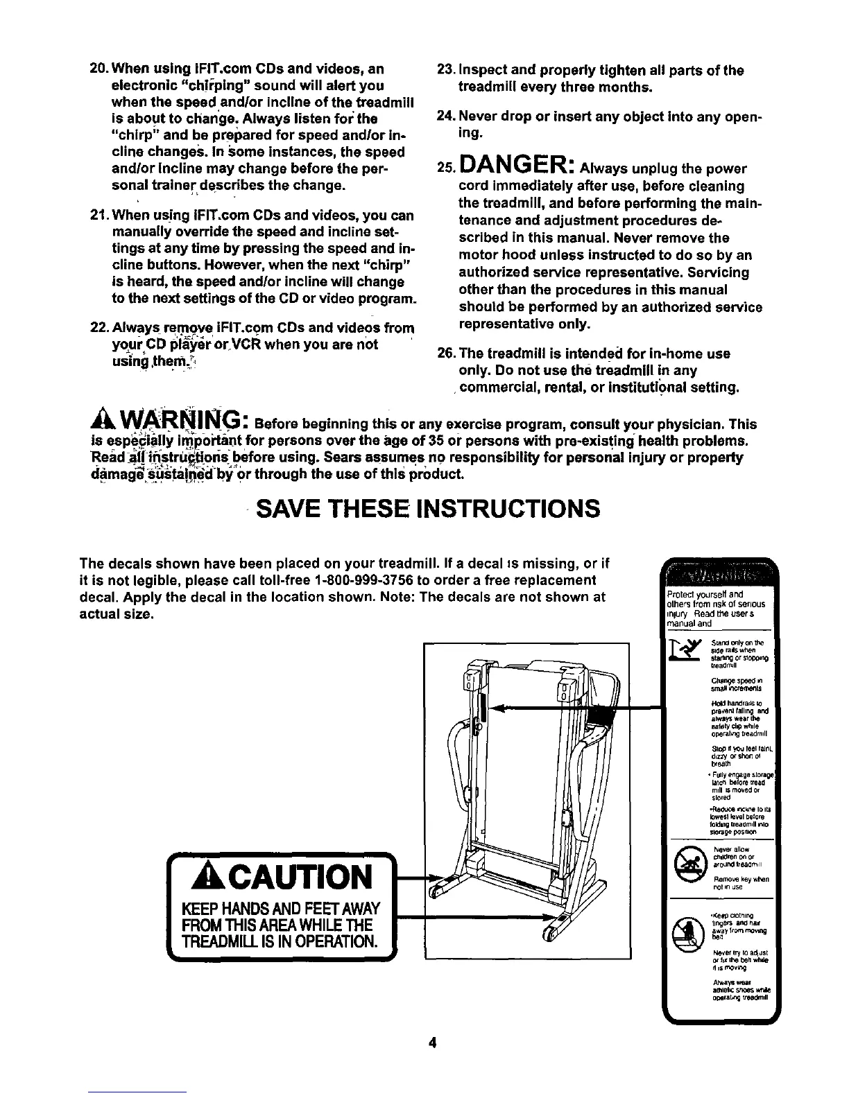 The decals shown have been placed on your treadmill• If a decal is missing, or if