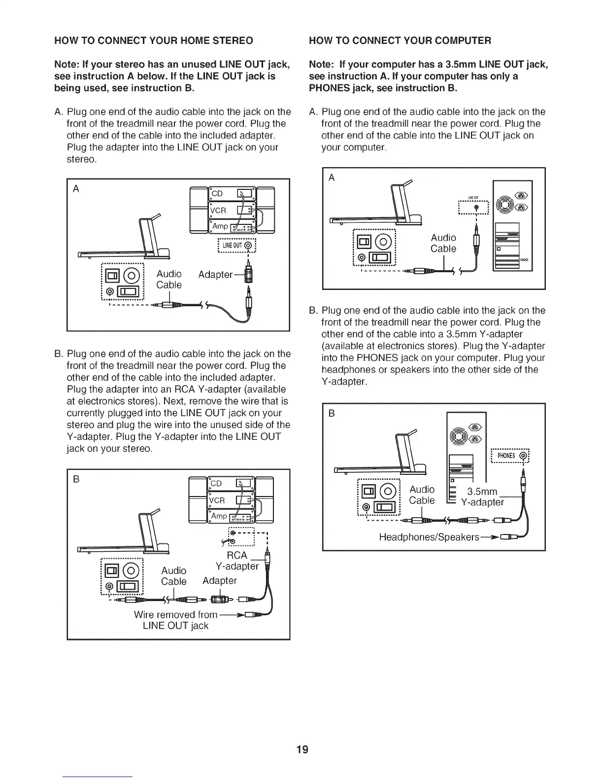 Y-adapter. Plug the Y-adapter into the LINE OUT