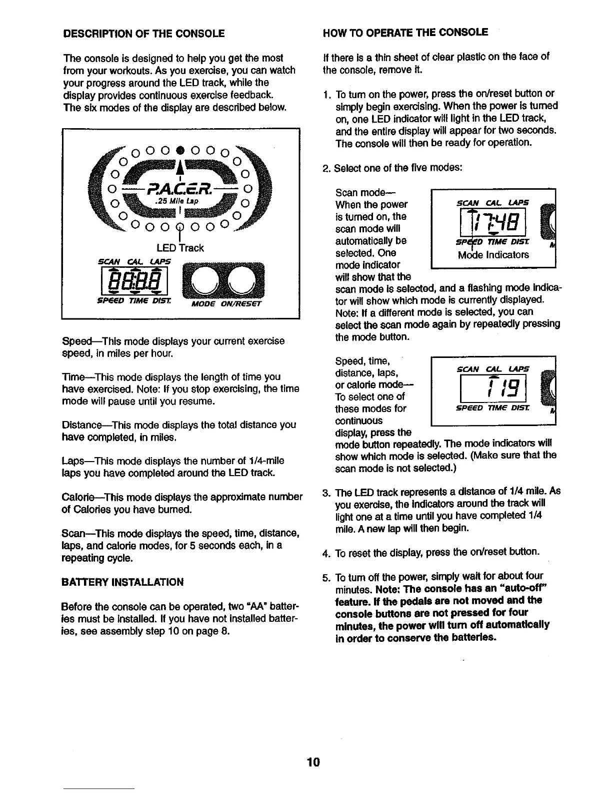 Scan--This mode displays the speed, time, distance,