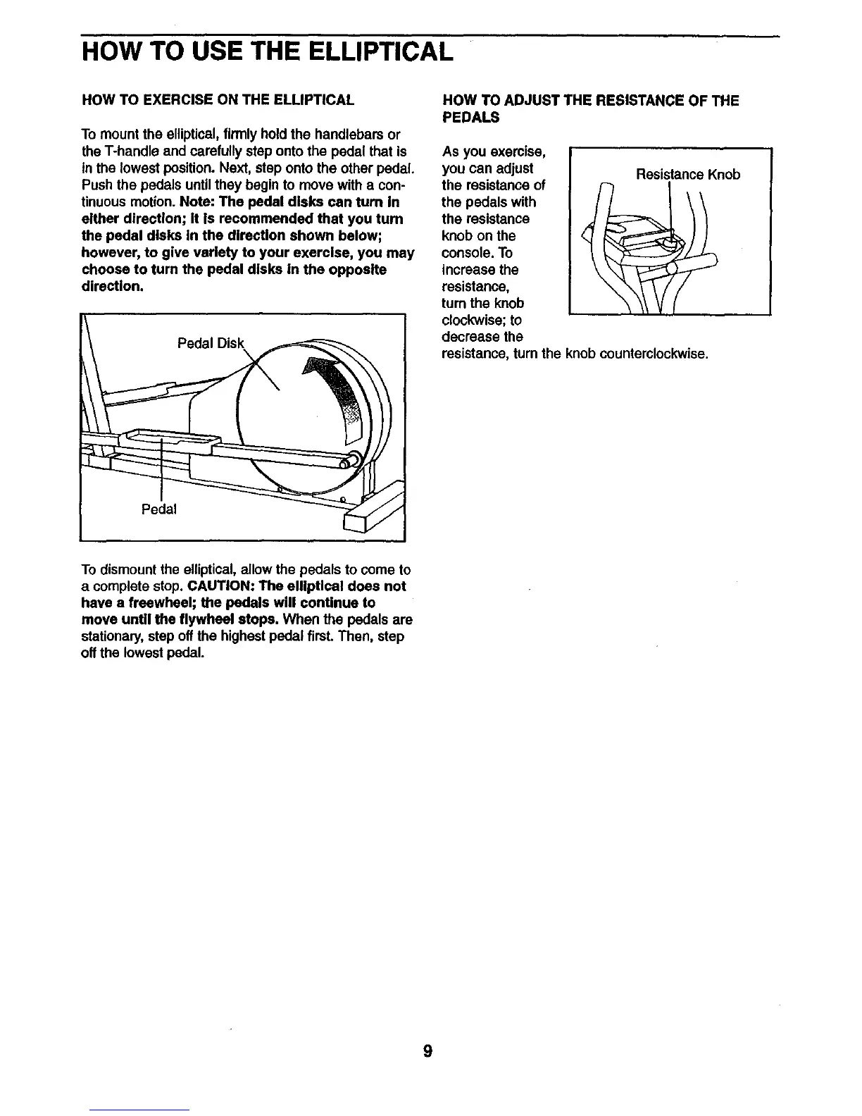 a complete stop. CAUTION: The elliptical does not