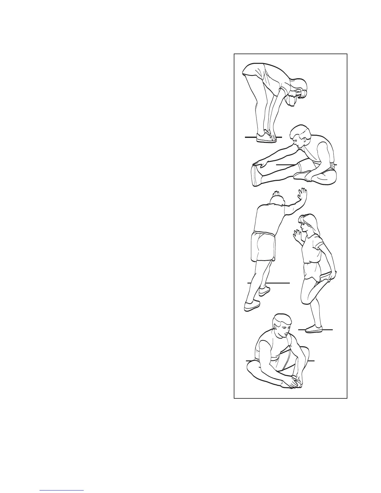 he correct form for several basic stretches is shown at the right. Move slowly as you stretch—never bounce.