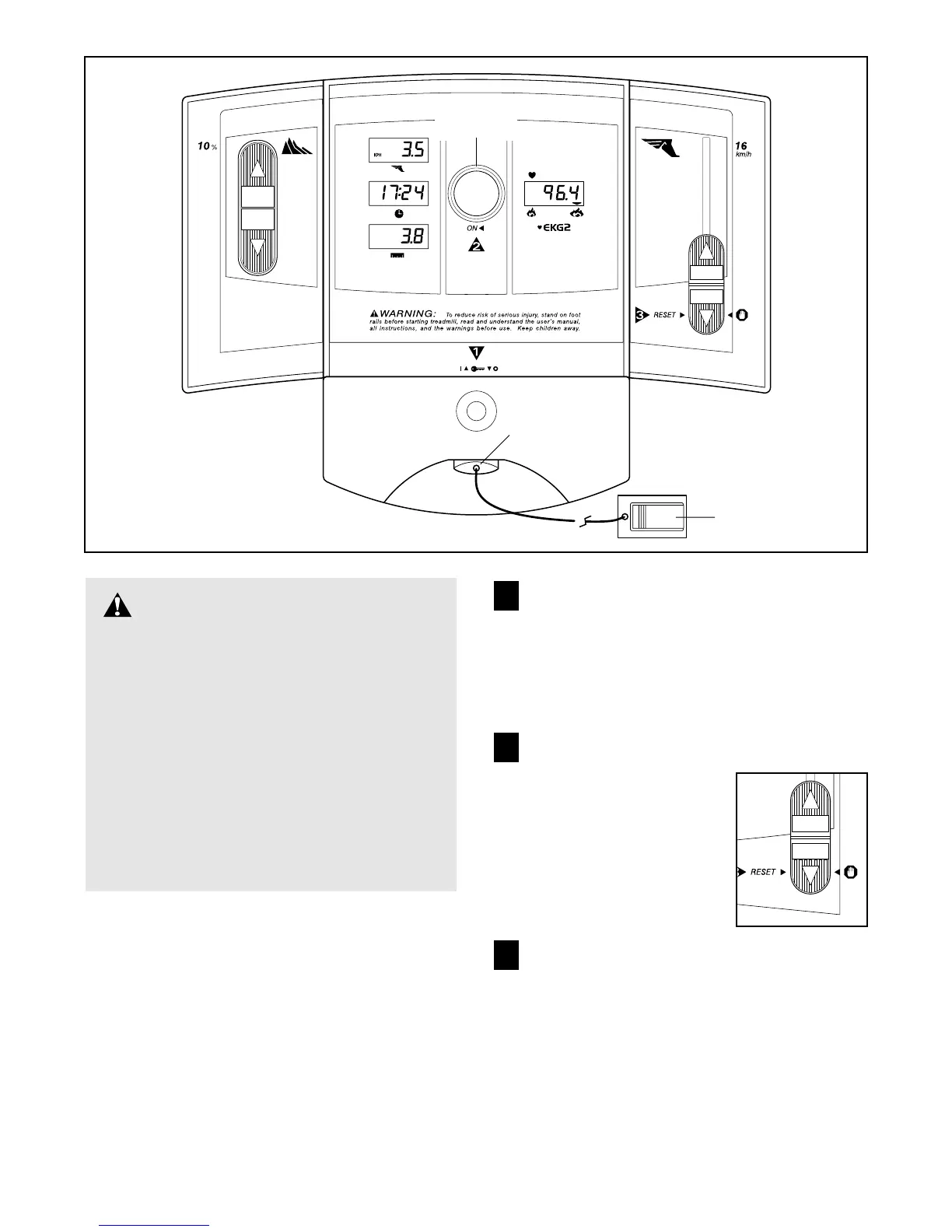 To stop the walking belt, step onto the foot rails