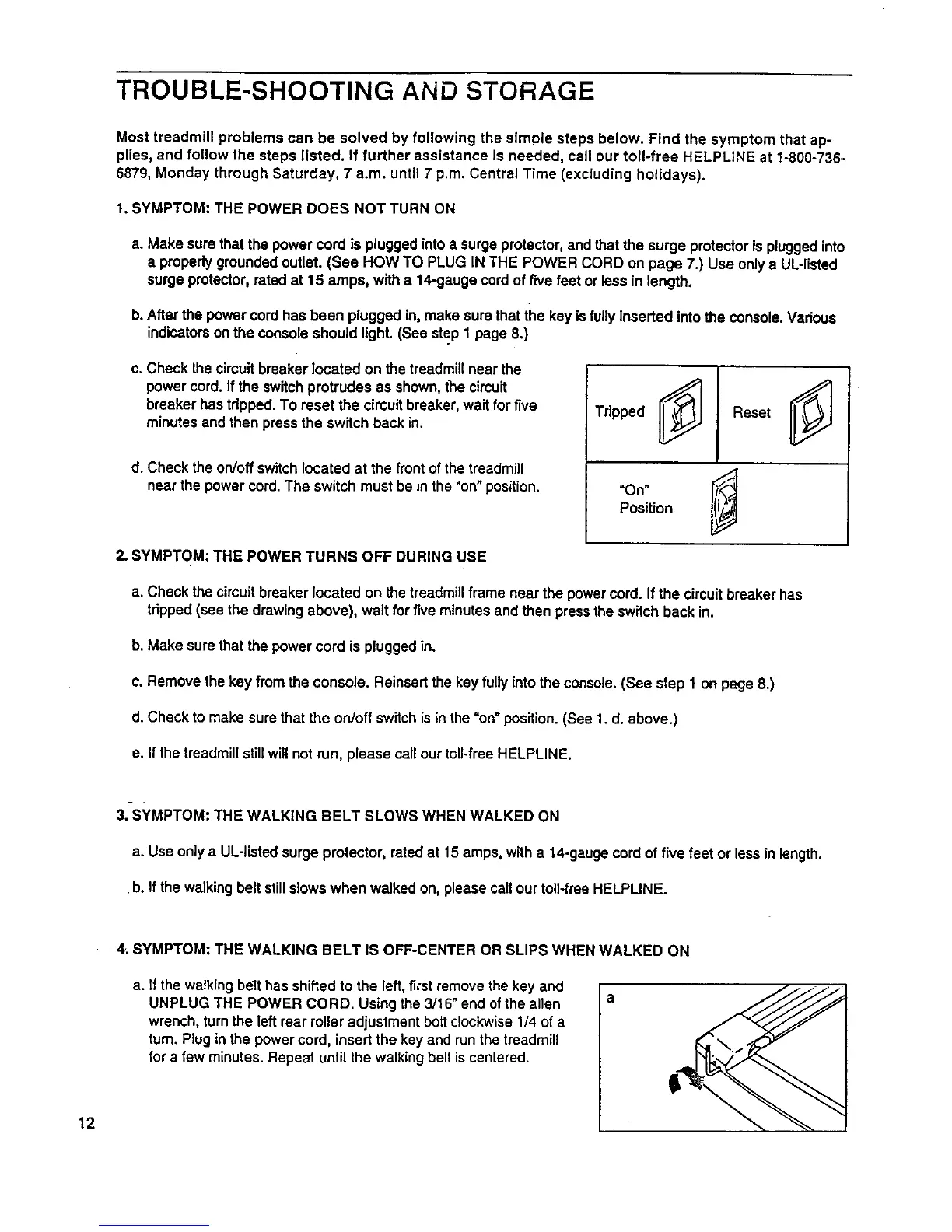 4; SYMPTOM: THE WALKING BELT IS OFF-CENTER OR SLIPS WHEN WALKED ON