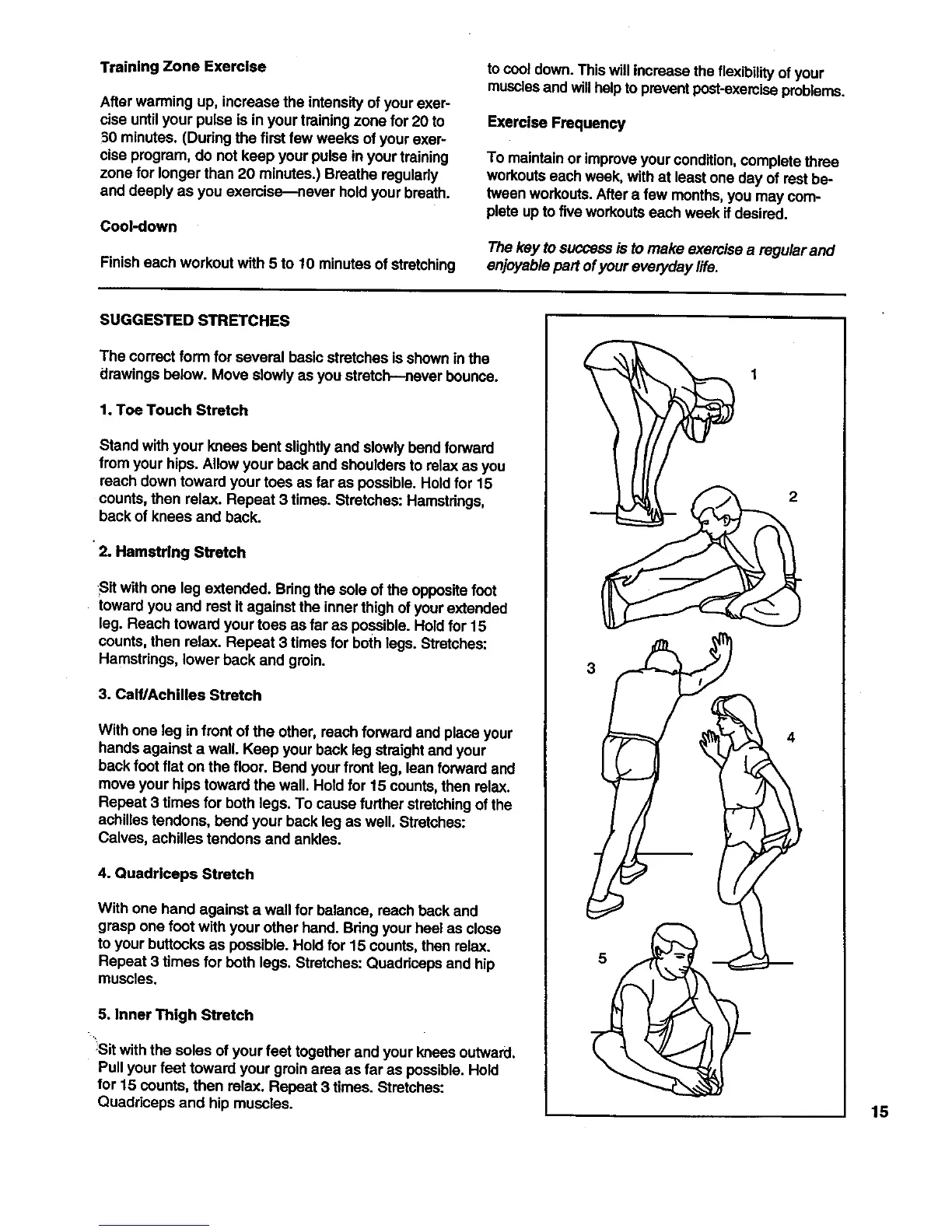drawings below. Move slowly as you stretch---never bounce.