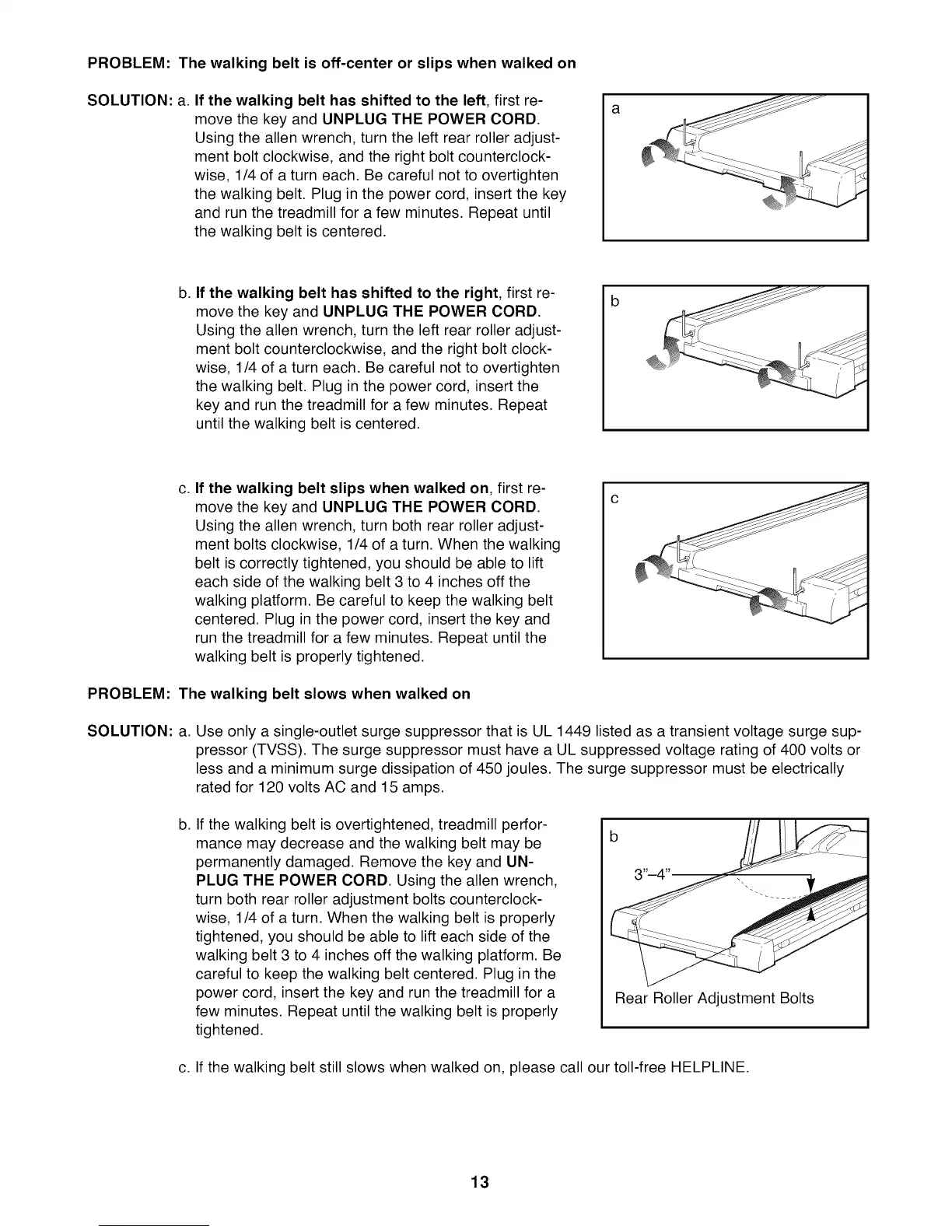 c. If the walking belt still slows when walked on, please call our toll-free HELPLINE.