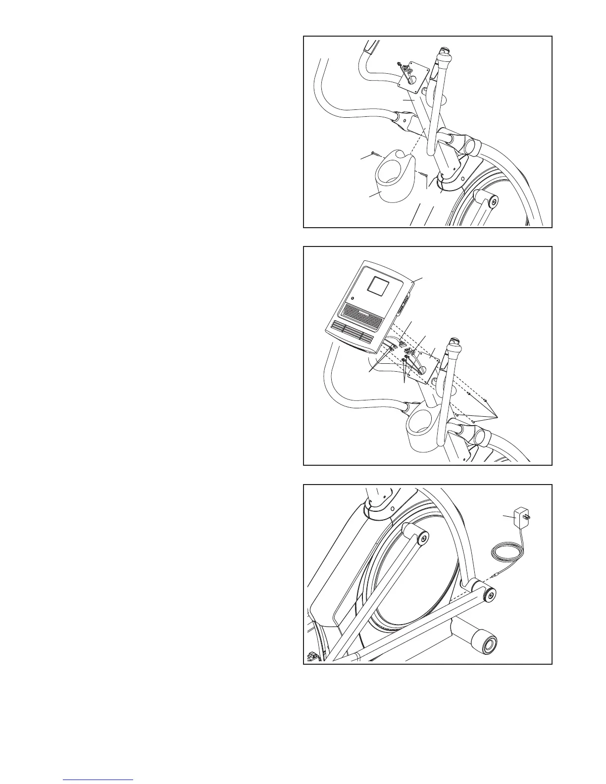 15. Make sure that all parts are properly tightened before you use the elliptical exerciser. Note: After assem-