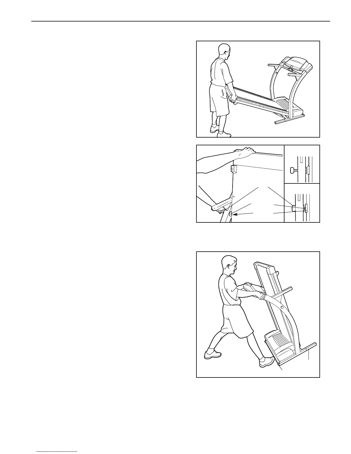 quierda, jale la perilla del seguro hacia la izquierda y sosténgala. Ladee la caminadora hacia abajo hasta que el