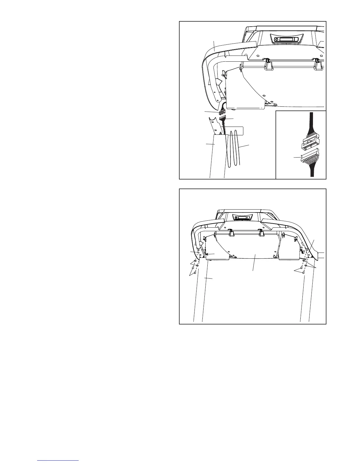 11. Set the console assembly on the Handrails (80).