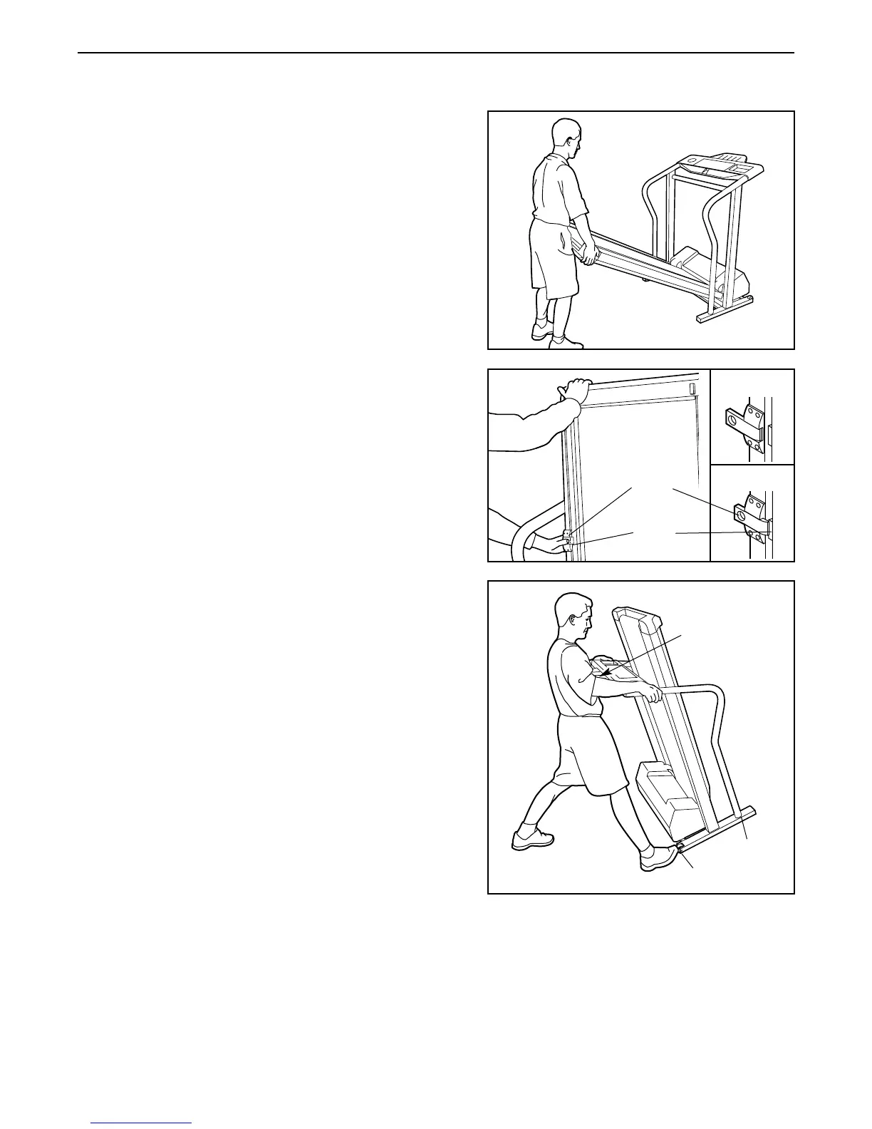 2. Refer to drawing 1 above. Hold the treadmill firmly with both hands, and lower the treadmill to the floor.