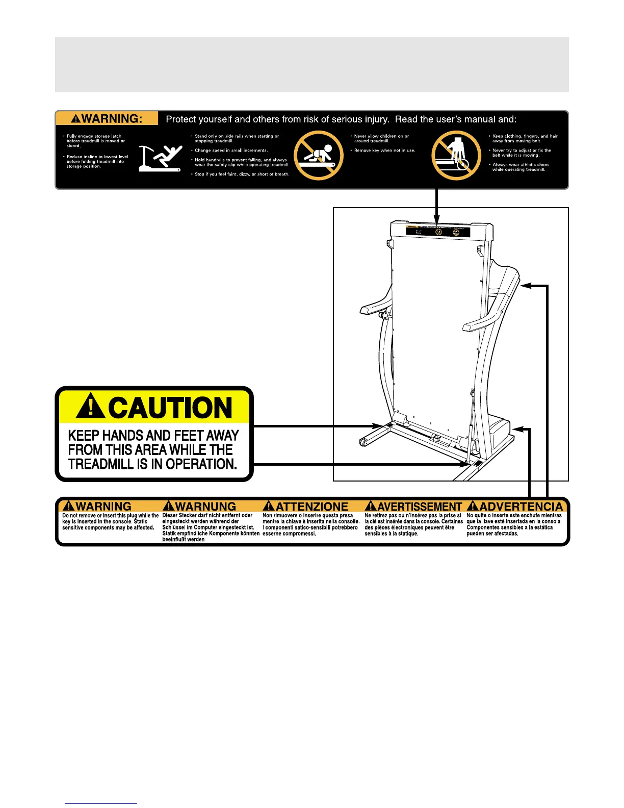 The decals shown below have been placed on your treadmill. If a decal is missing or illegible, please