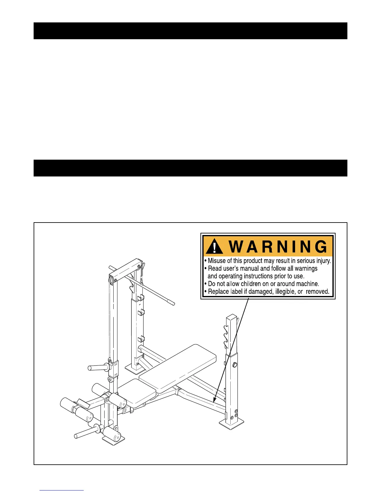 The decal shown below has been placed on the weight bench. If the decal is missing, or if it is not legi-