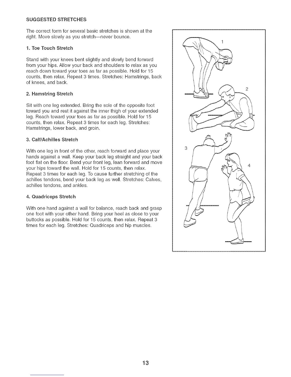times for each leg, Stretches: Quadrieeps and hip muscles,
