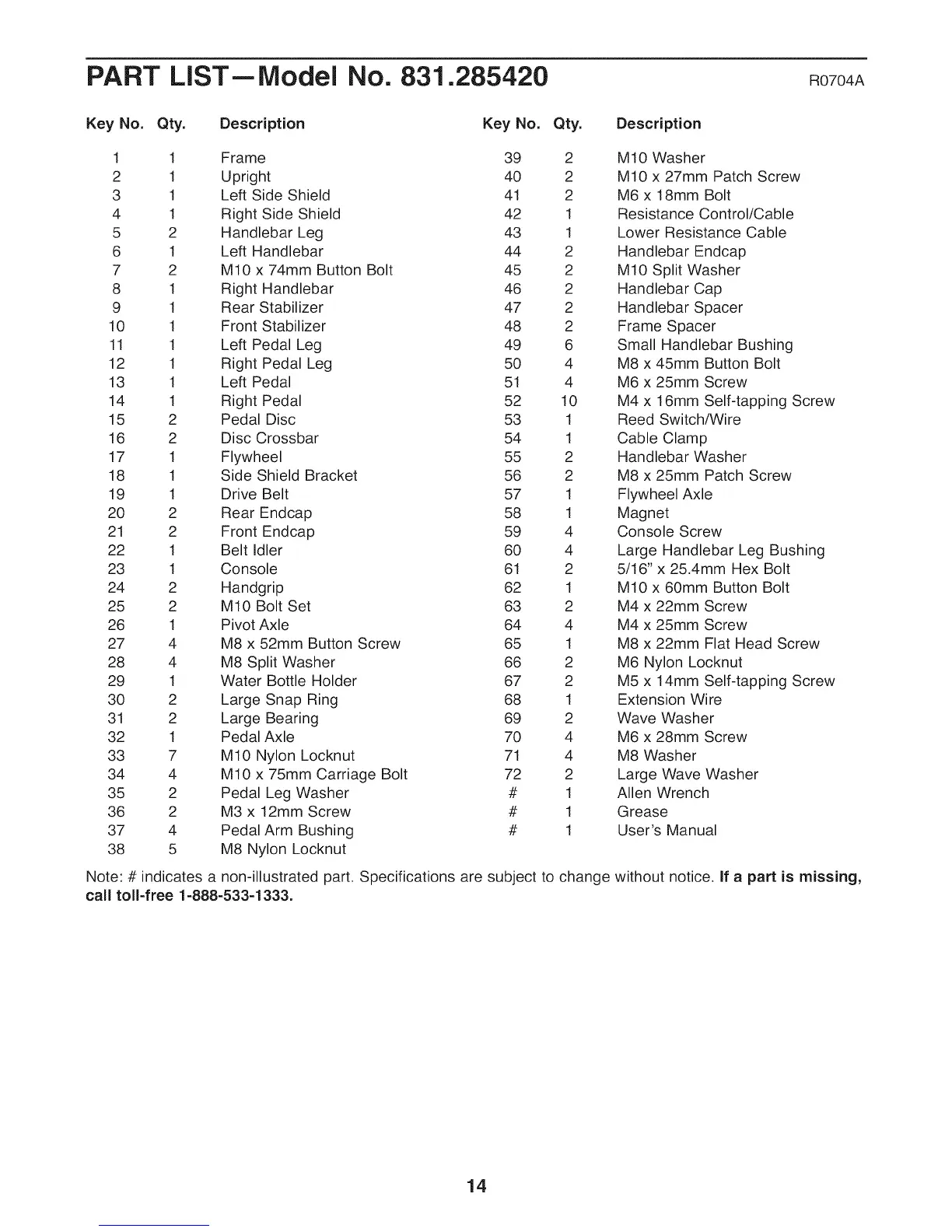 Note: # indicates a non-illustrated part. Specifications are subject to change