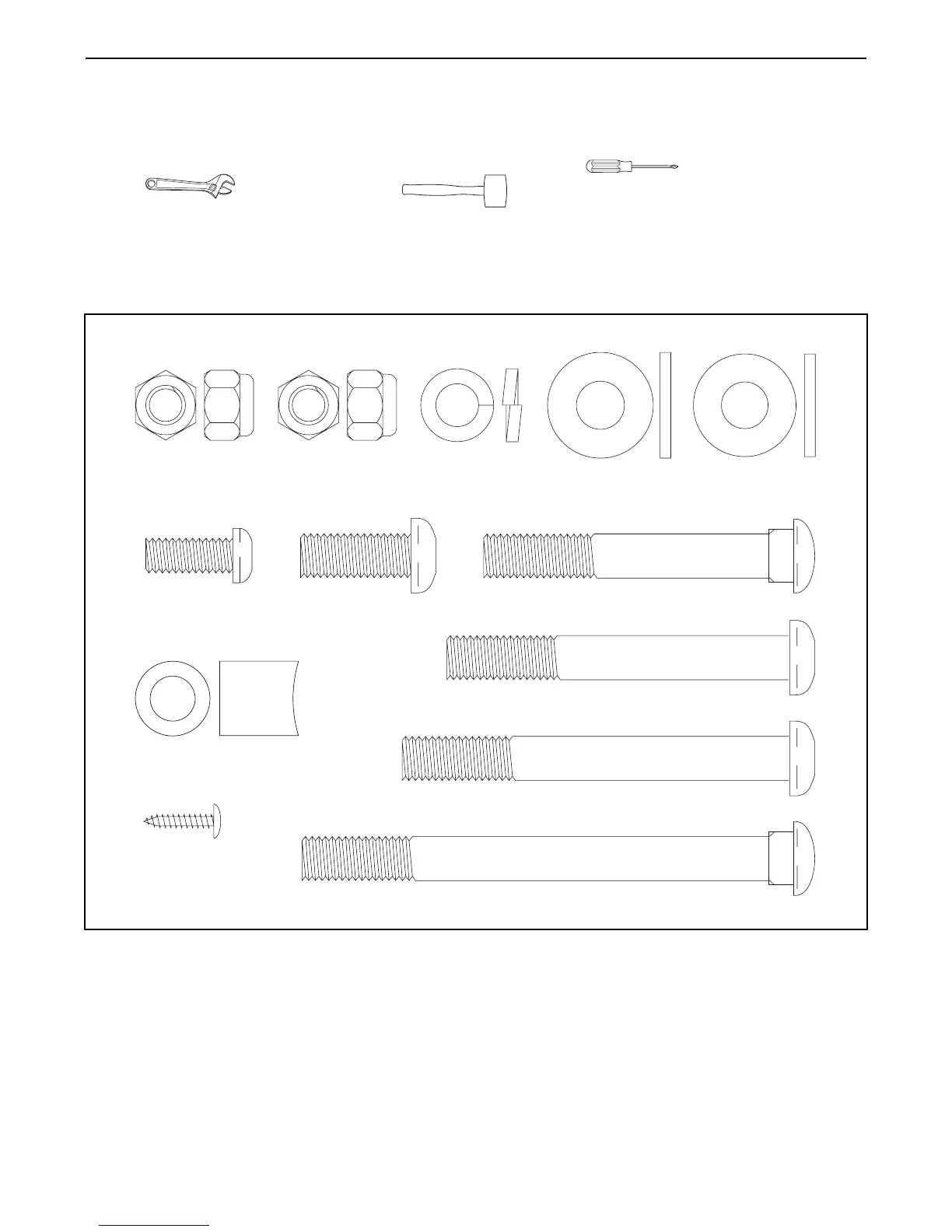 As you assemble the elliptical crosstrainer, use the drawings below to identify the small parts used in assembly.