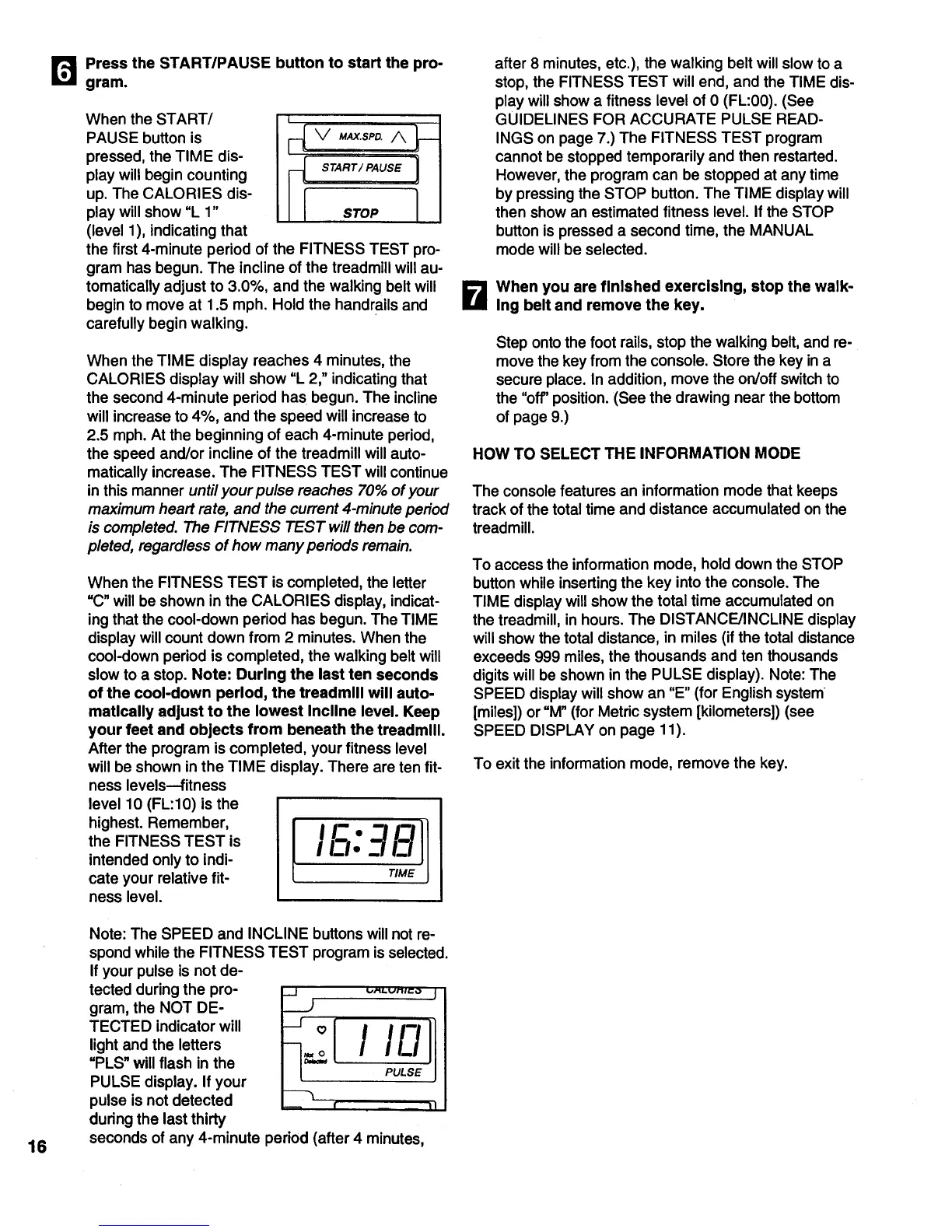 the treadmill, in hours. The DISTANCE/INCLINE display
