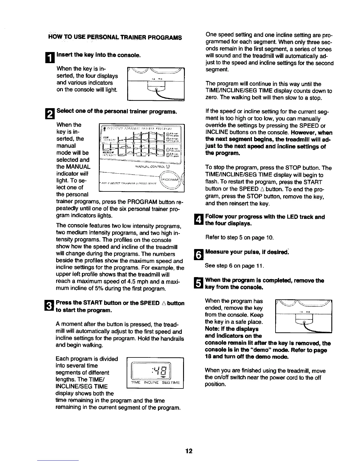 TIME/INCLINE/SEG TIME display willbegin to