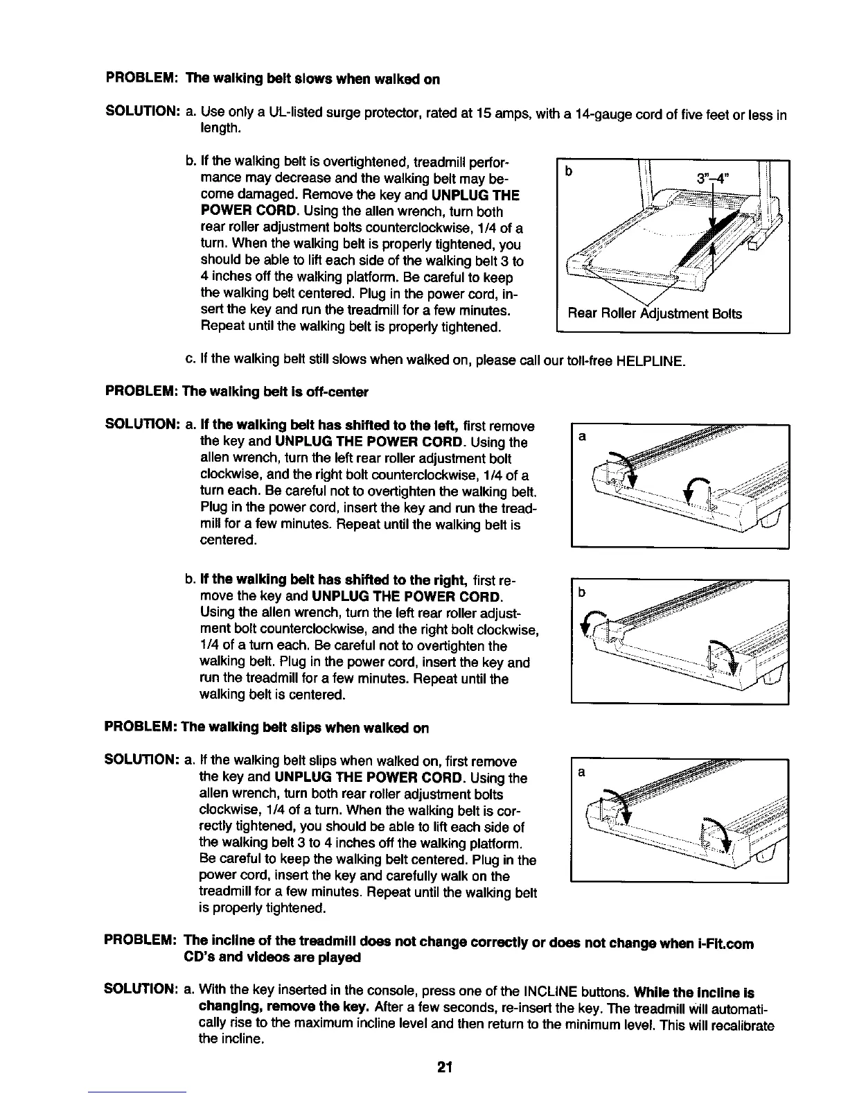 c. If the walking belt still slows when walked on, please call our toll-free HELPLINE.