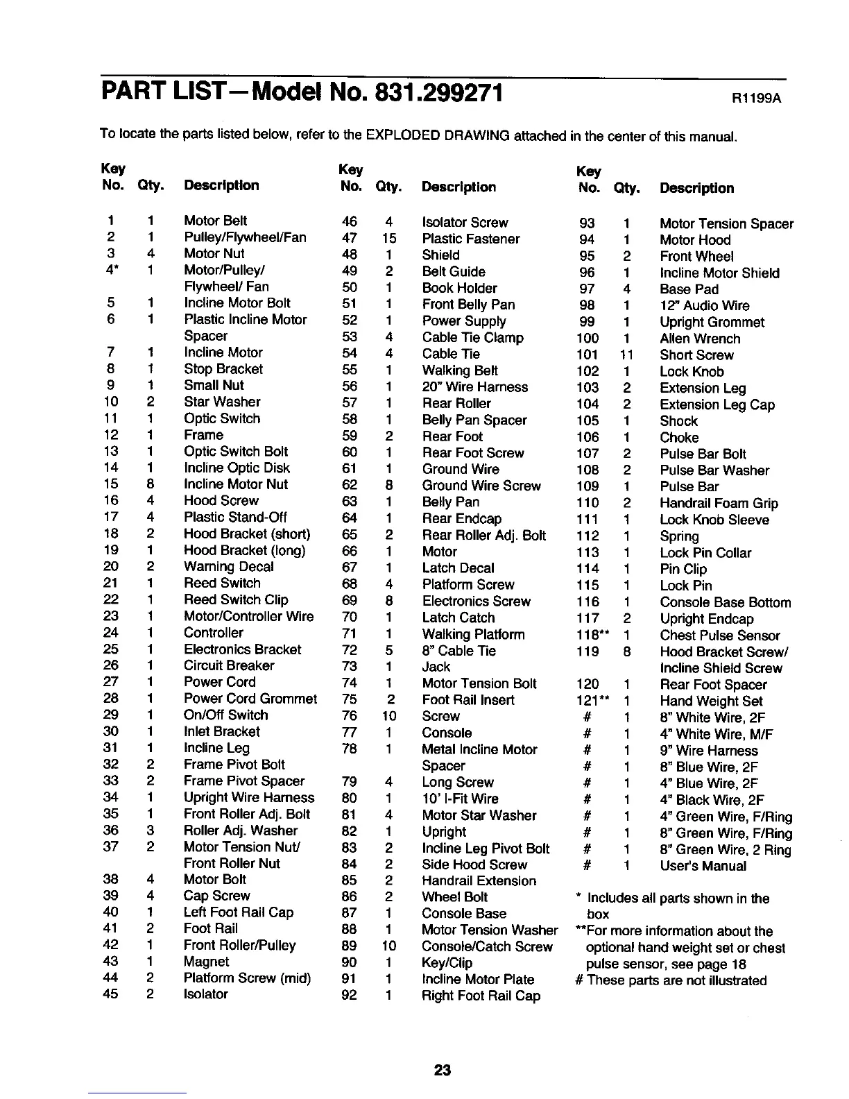Platform Screw (mid) 91 1 Incline Motor Plate # These parts are not illustrated