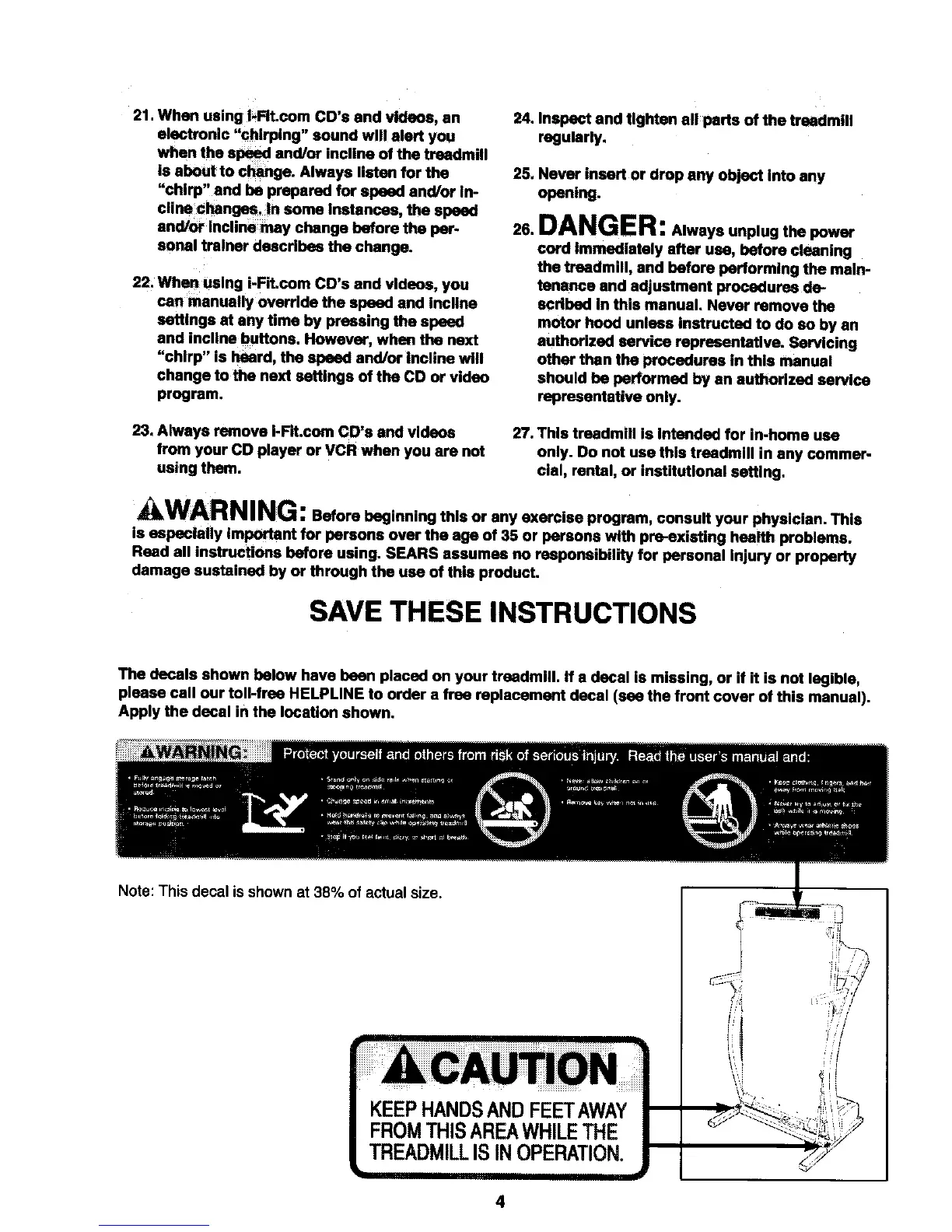 The decals shown below have been placed on your treadmill. If a decal is missing, or if it is not legible,
