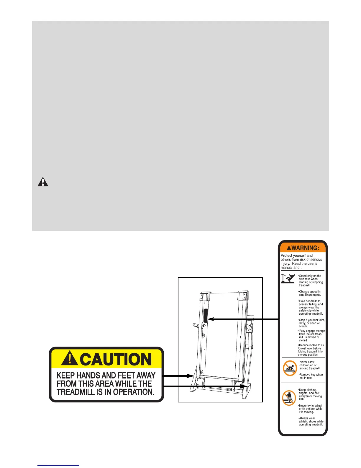 The decals shown below have been placed on your treadmill. If a decal is missing,