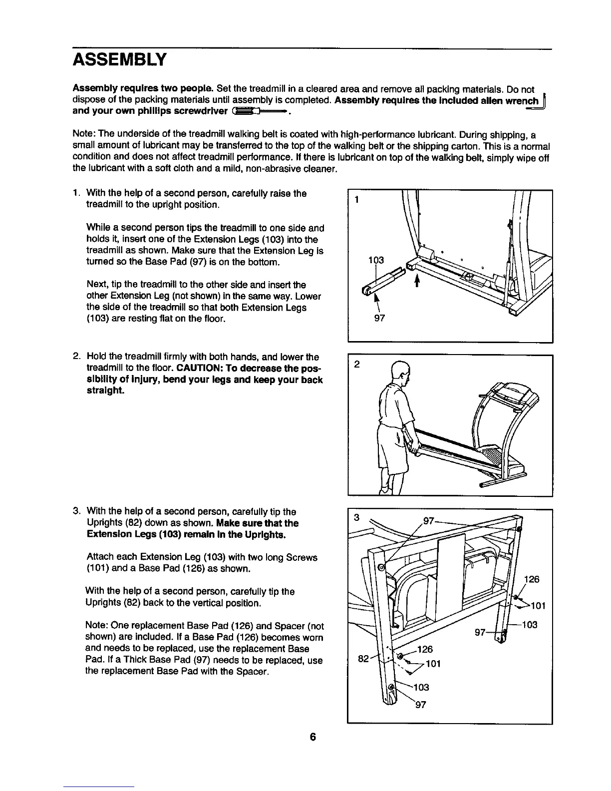 Assembly requlrea two people. Set the treadmillin a cleared area and remove all packingmaterials. Do not