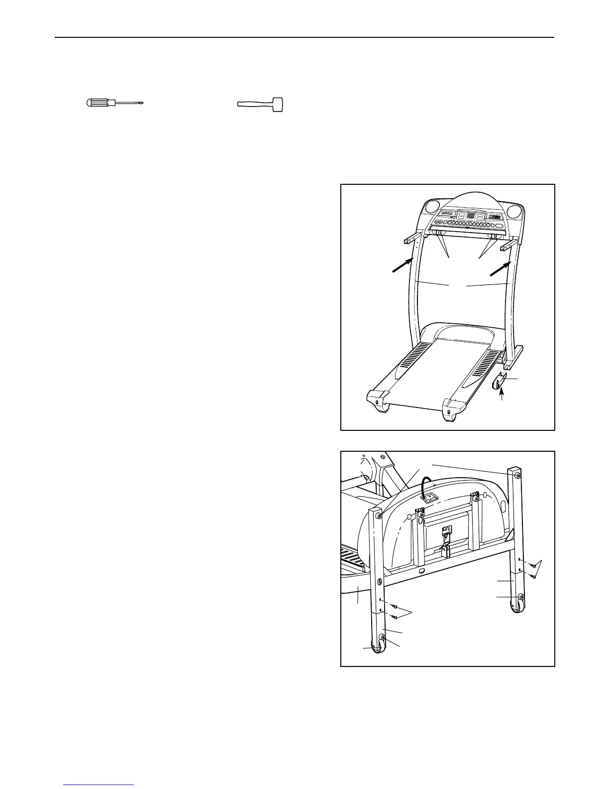 Assembly requires two people. Set the treadmill in a cleared area and remove all packing materials. Do not
